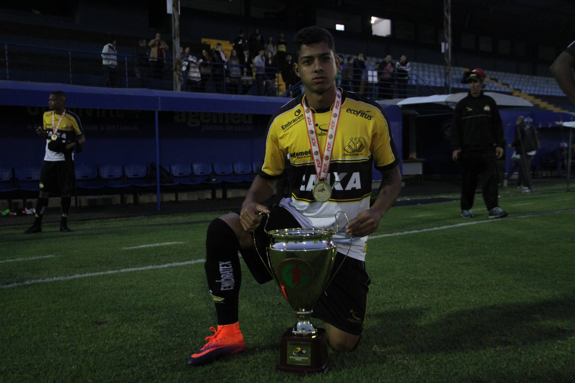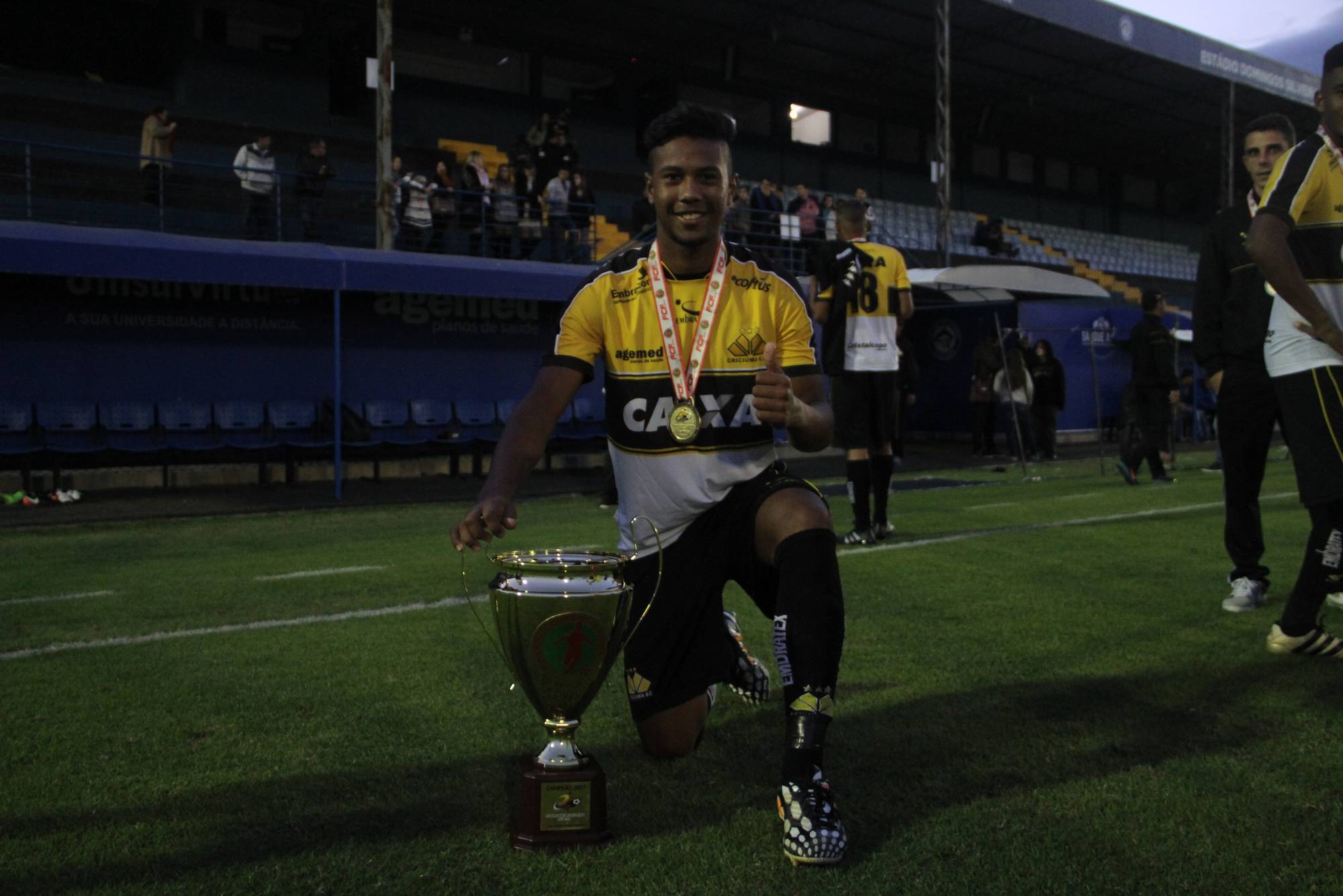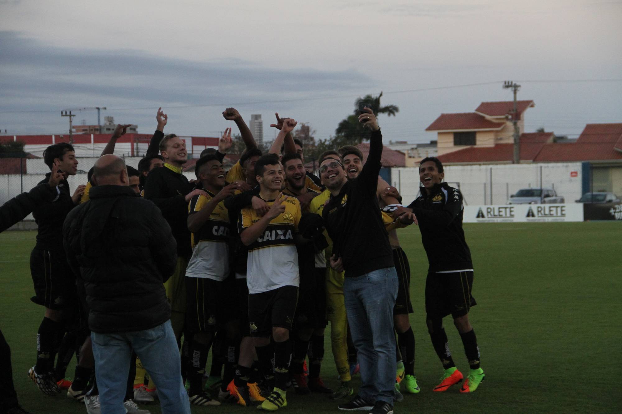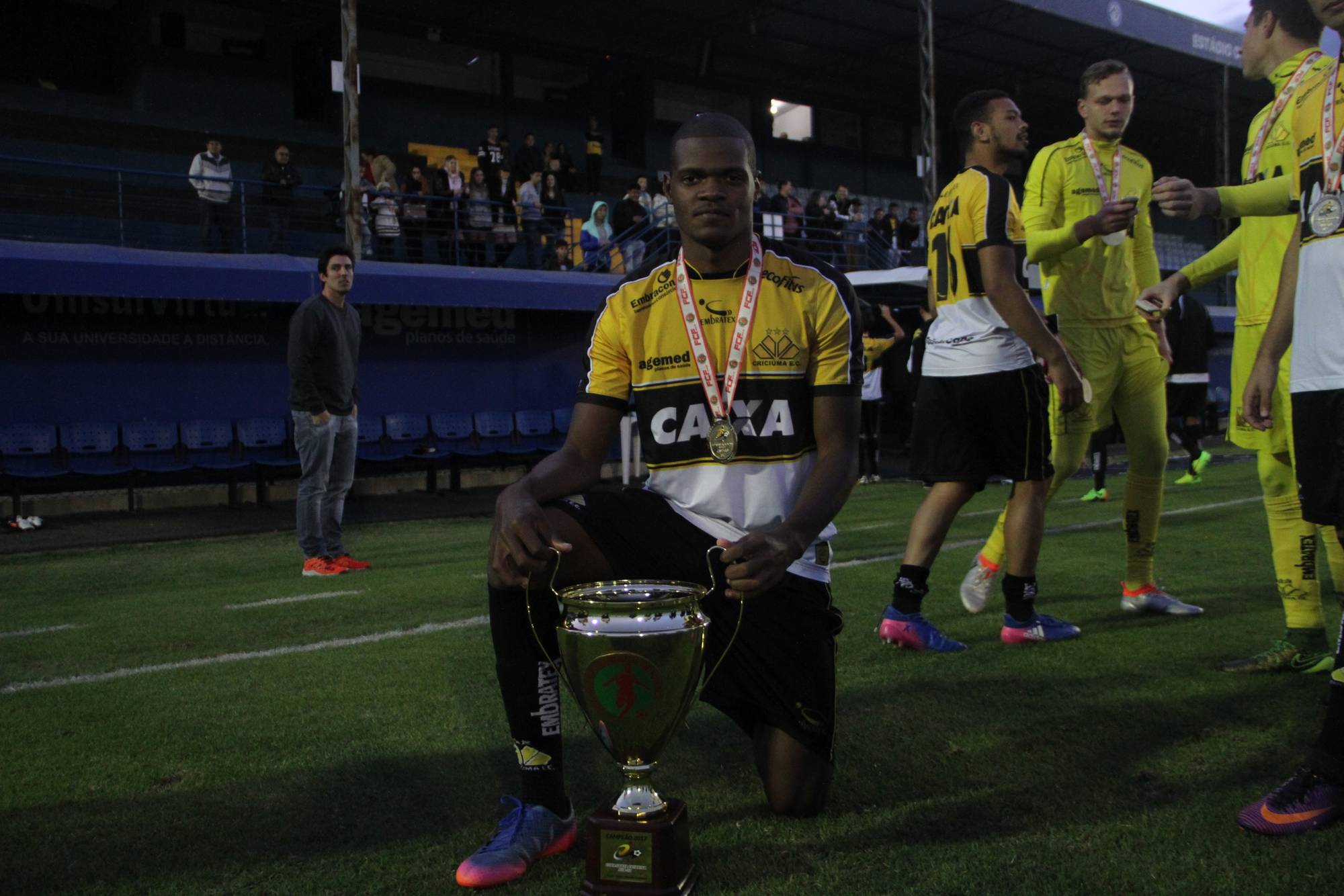 Legenda: Fotos da comemoração dos jogadores, comissão técnica e dirigentes do Criciúma após a partida Criciúma e Avaí, disputado na tarde deste sábado (01/07), no estádio Domingos Gonzales, em Tubarão, pela final da Copa Santa Catarina Sub-20 Fotos: Fernando Ribeiro/www.criciuma.com.br Download