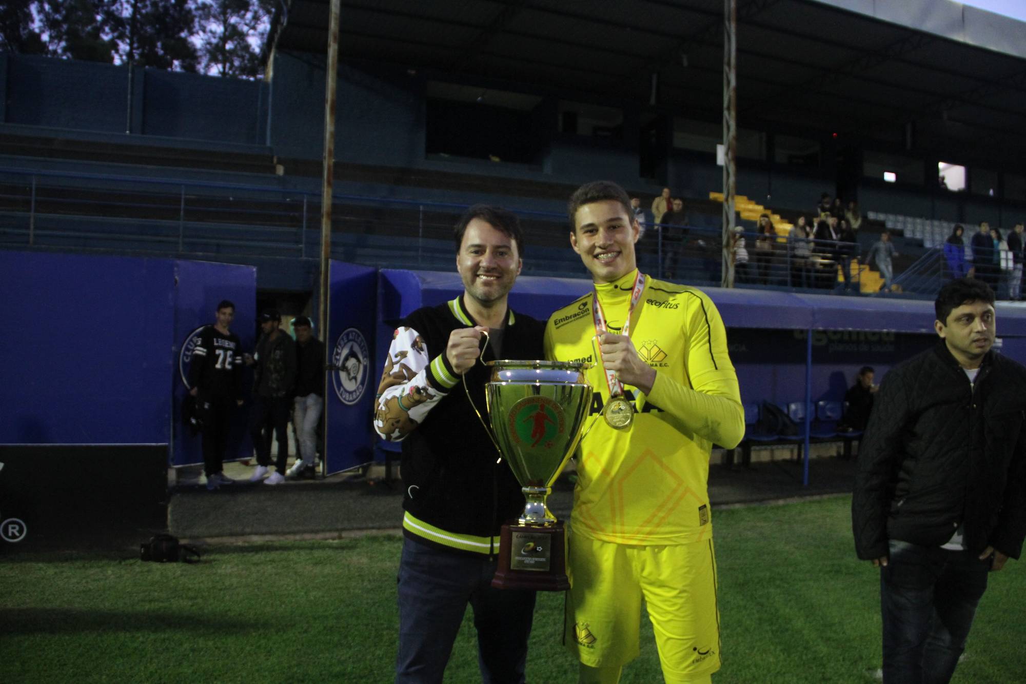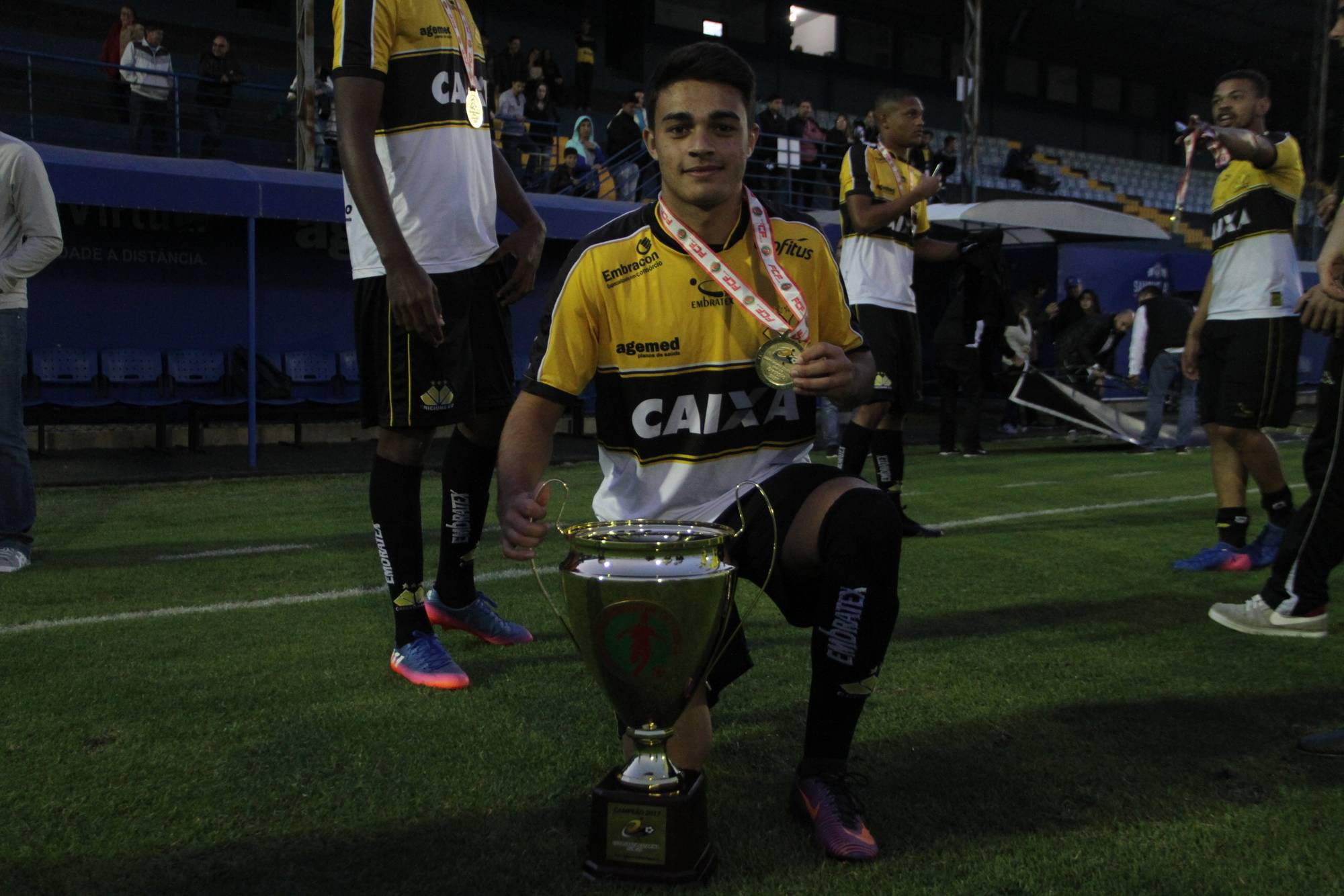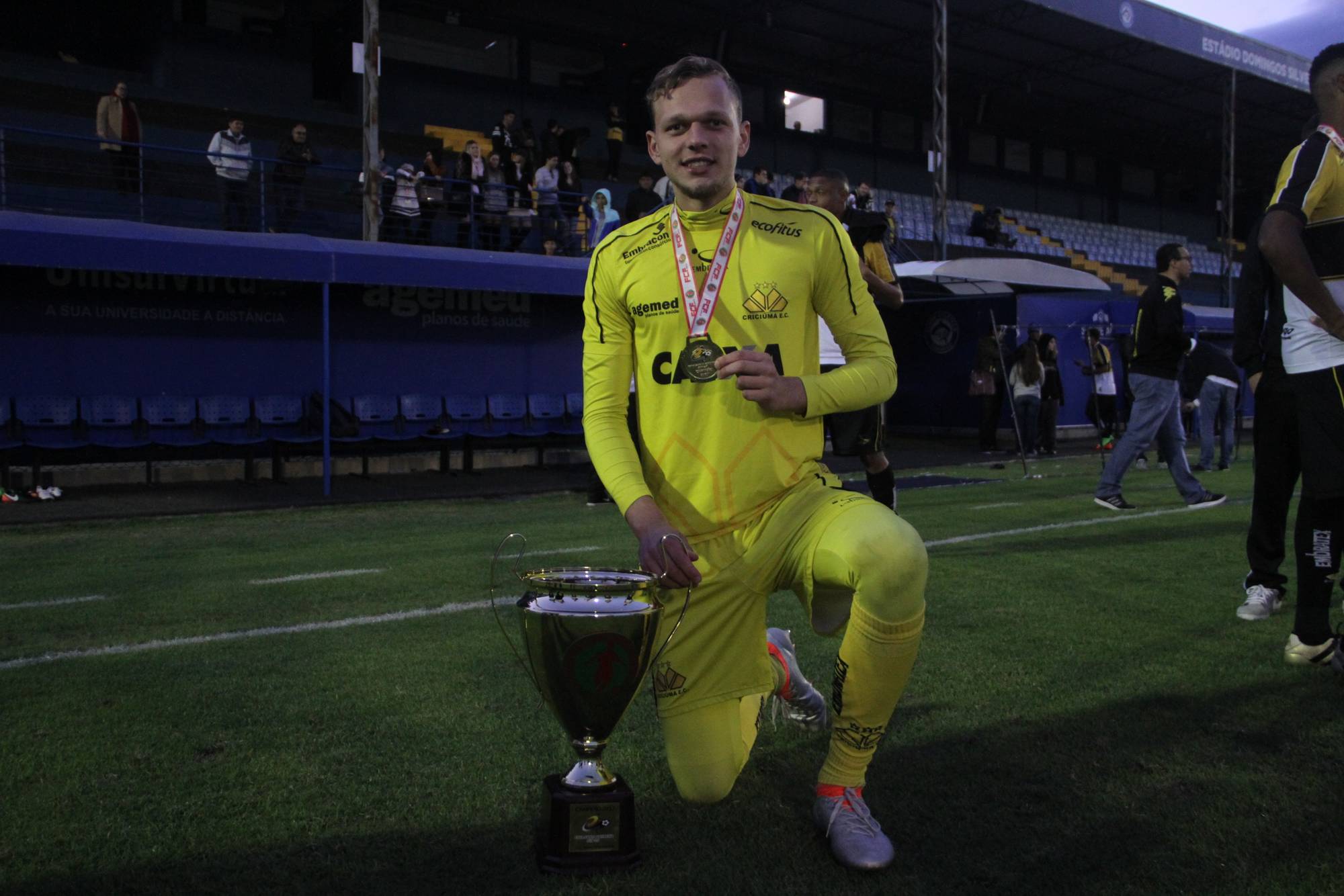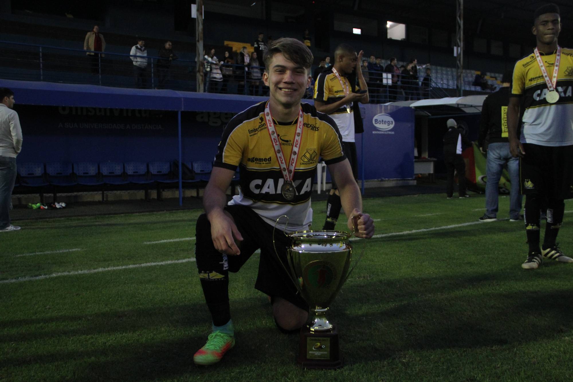 Legenda: Fotos da comemoração dos jogadores, comissão técnica e dirigentes do Criciúma após a partida Criciúma e Avaí, disputado na tarde deste sábado (01/07), no estádio Domingos Gonzales, em Tubarão, pela final da Copa Santa Catarina Sub-20 Fotos: Fernando Ribeiro/www.criciuma.com.br Download
