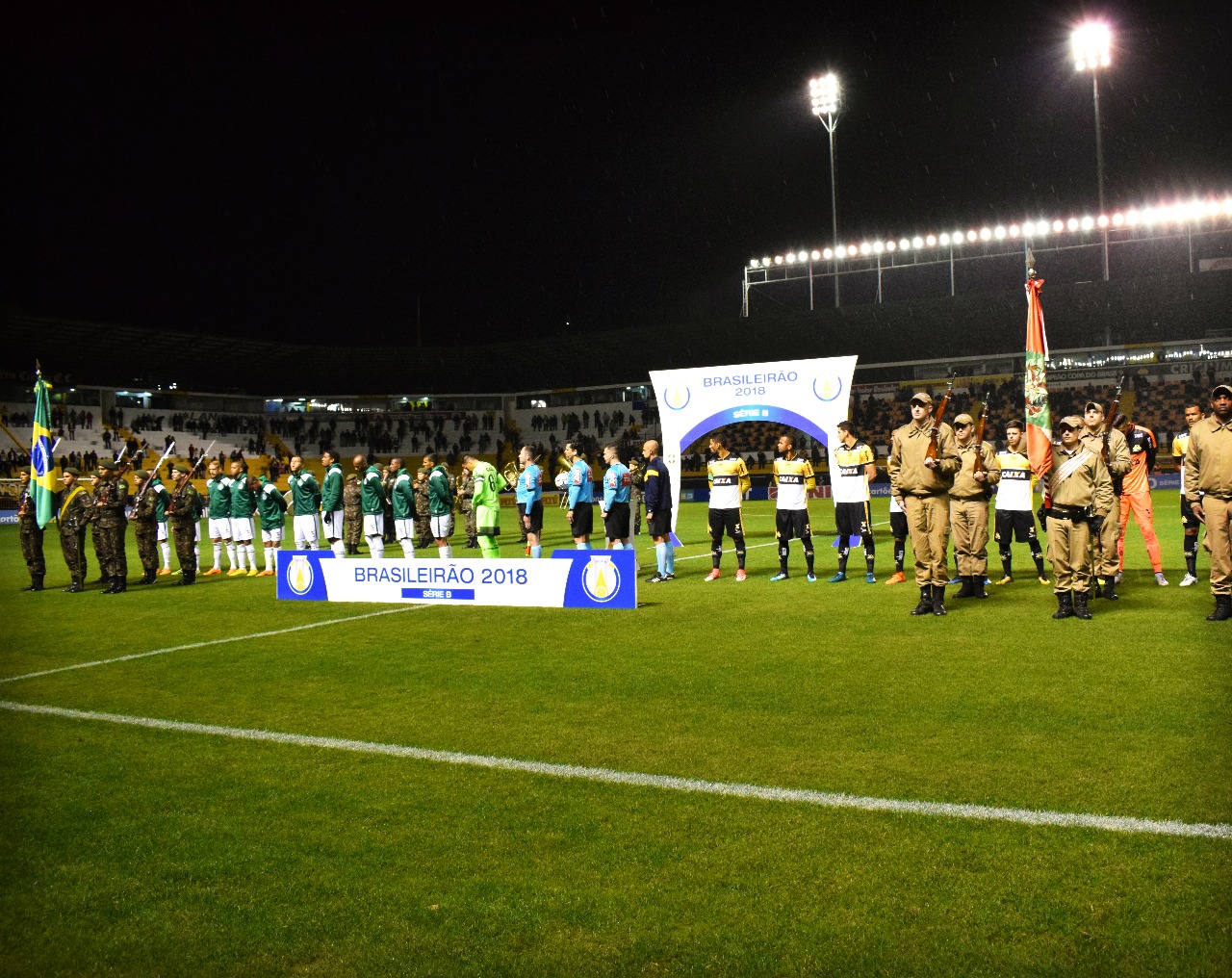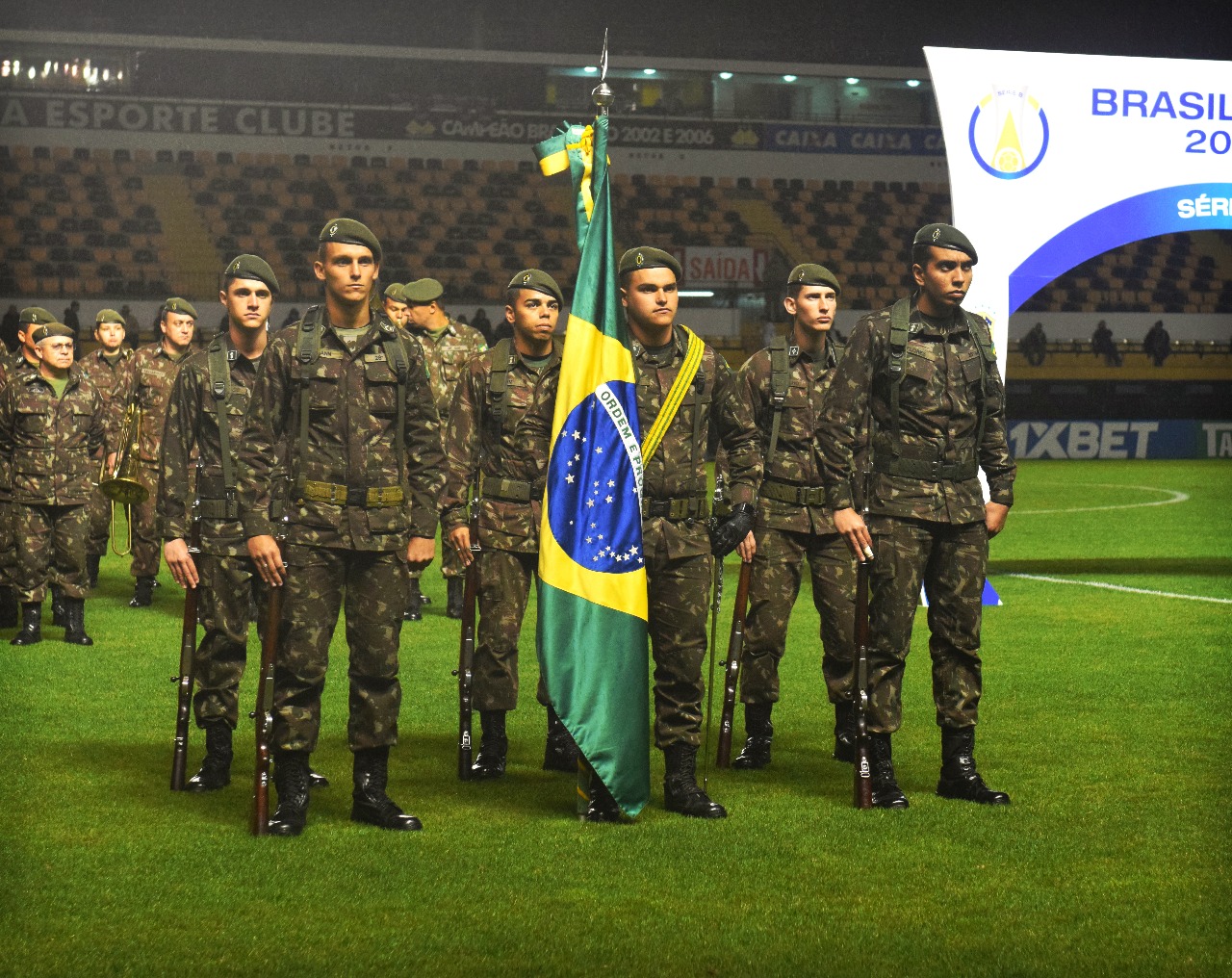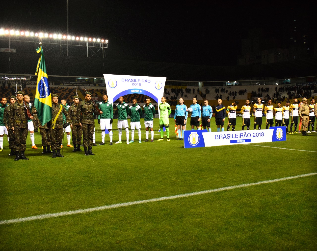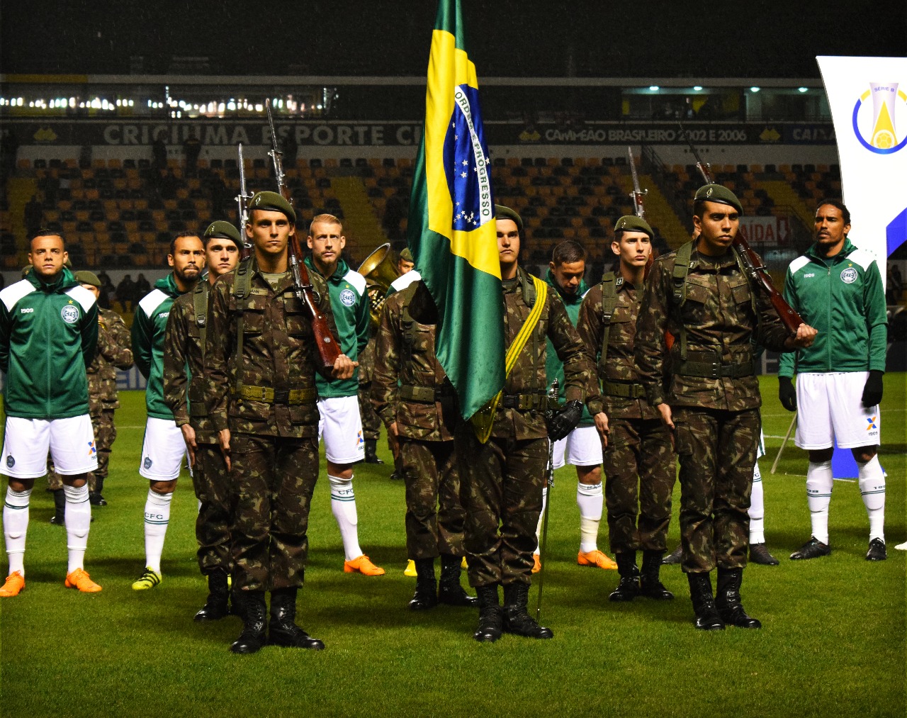 Legenda: Soldados do 28º GAC entraram com as bandeiras do Brasil e de Santa Catarina e na sequência a orquestra tocou os respectivos hinos Fotos: Ulisses Job/www.criciuma.com.br Download