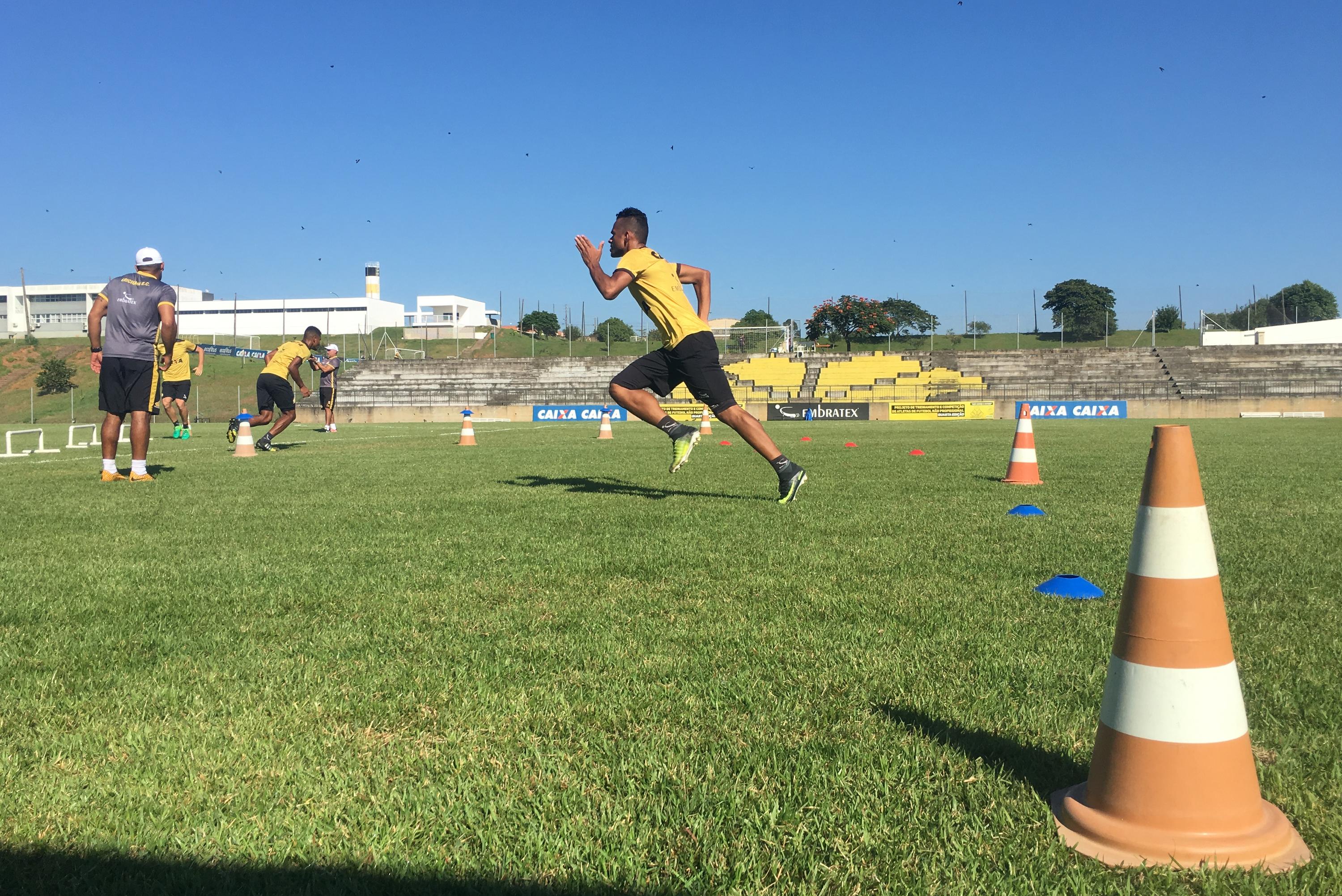 Legenda: Atletas durante treino do Criciúma na manhã deste sábado (07/04), no CT