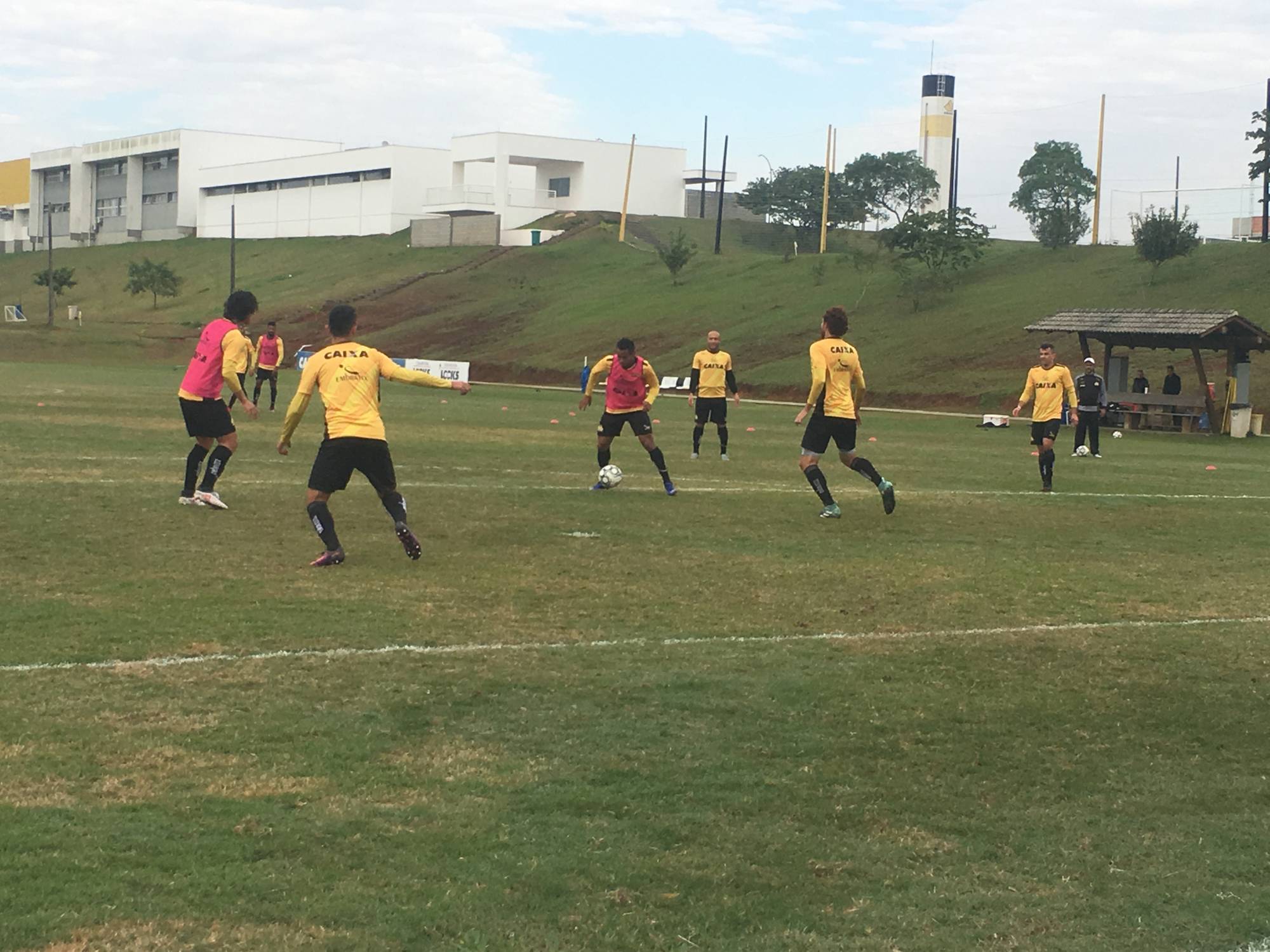 Legenda: Atletas do Criciúma durante treino no CT Antenor Angeloni na manhã deste sábado (07/07)