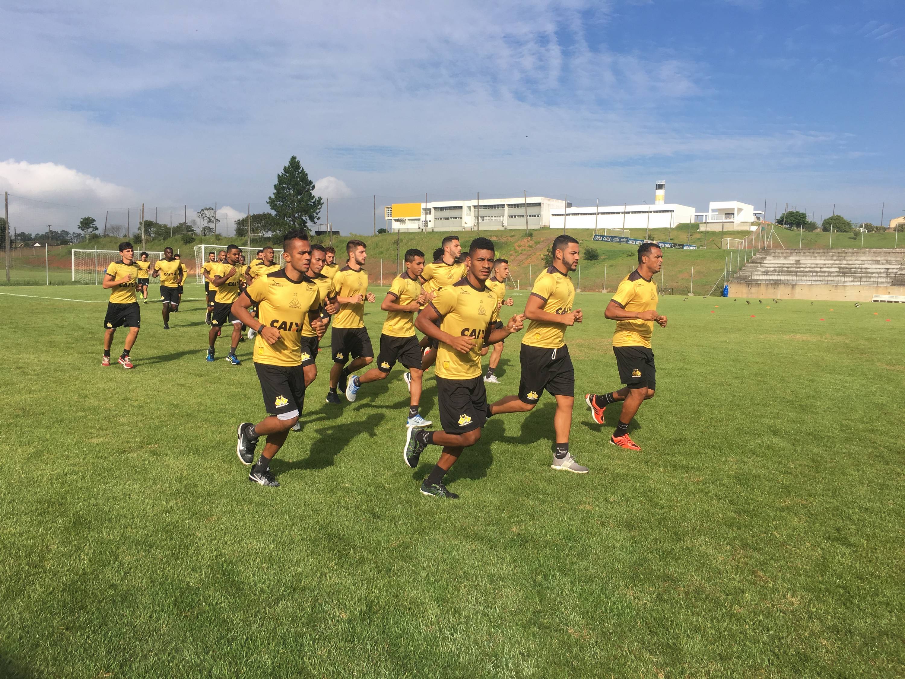 Legenda: Atletas durante treino do Criciúma na manhã desta segunda-feira (09/04), no CT