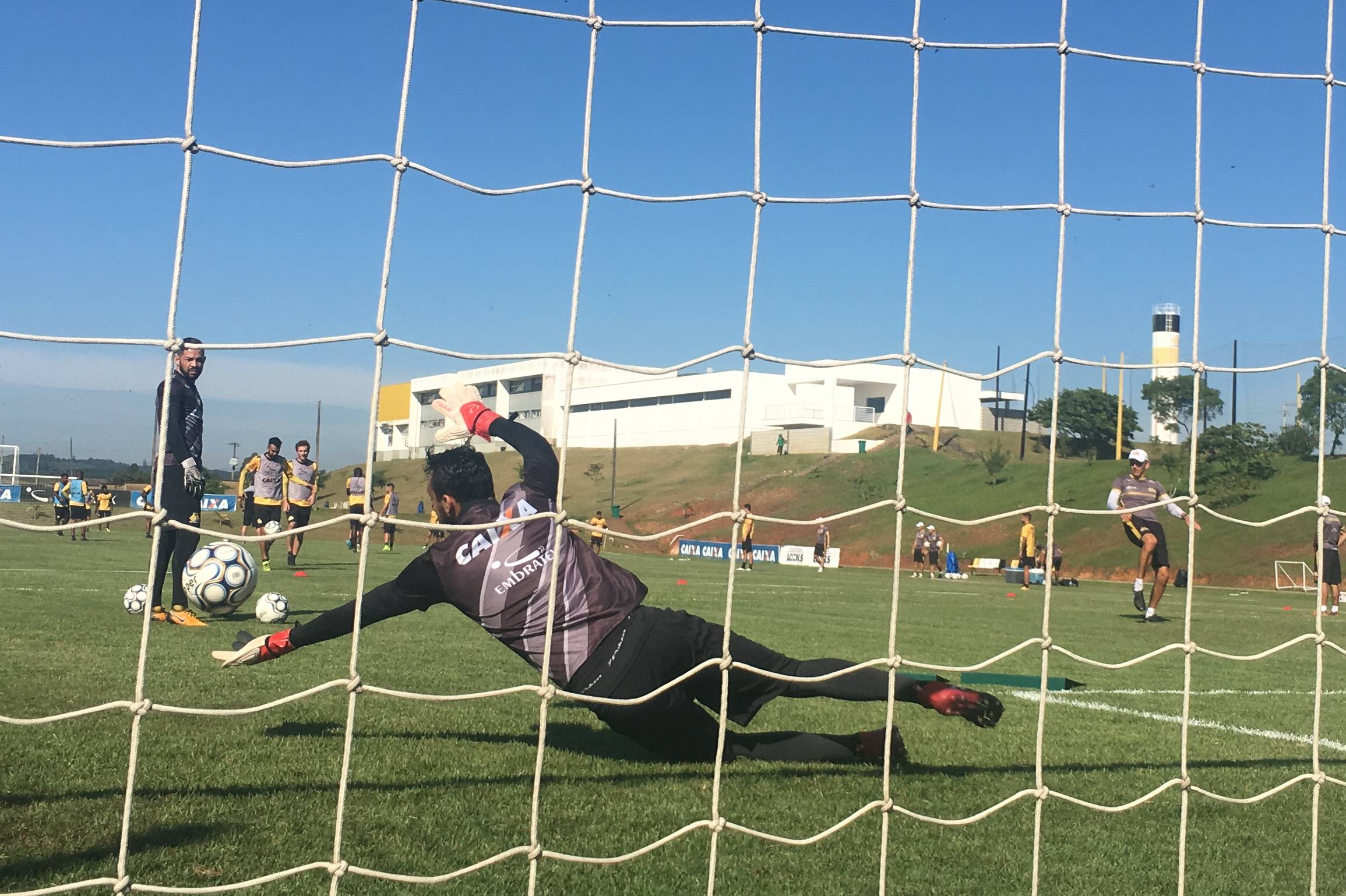 Legenda: Atletas do Criciúma durante treino no CT na manhã desta terça-feira (24/04)