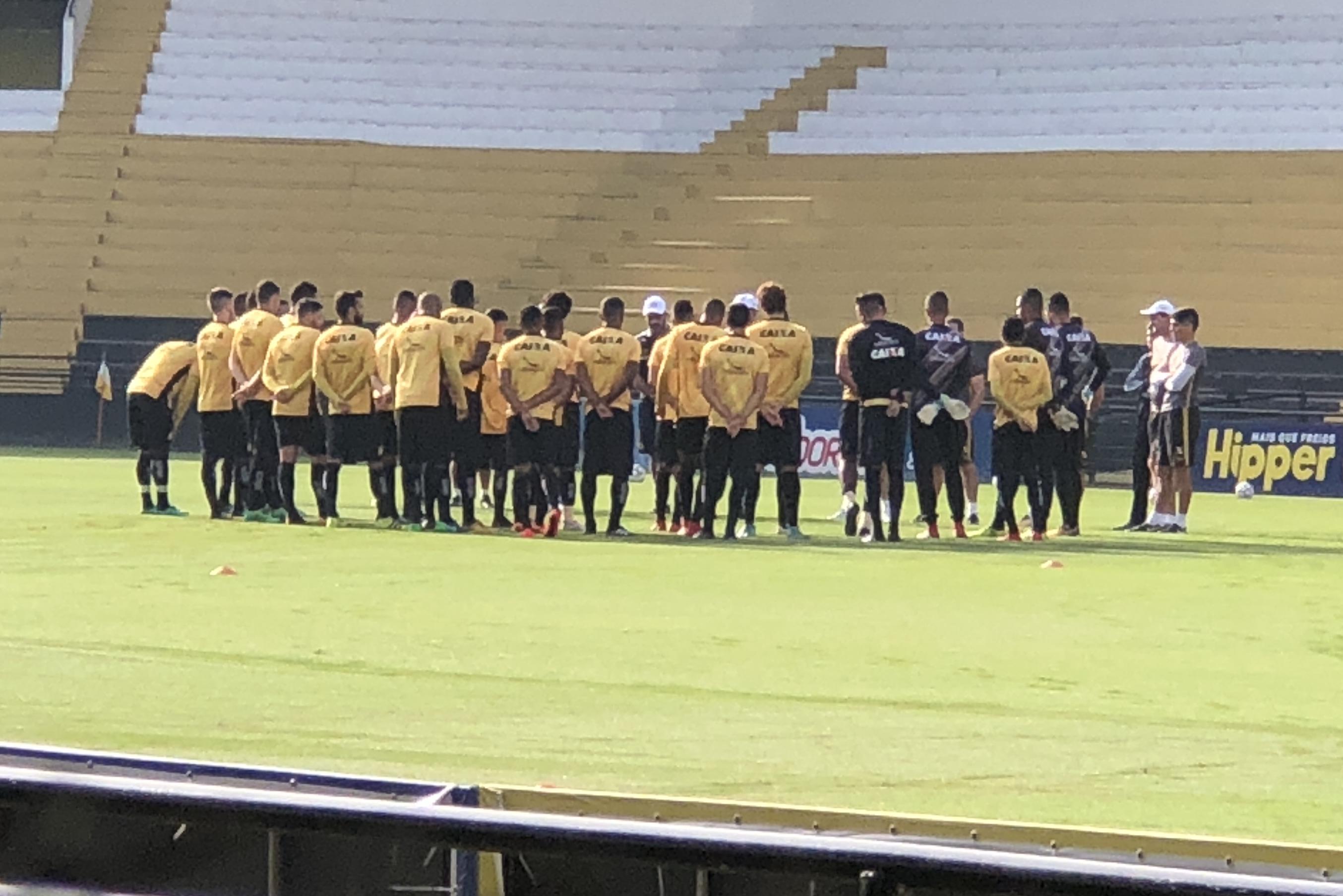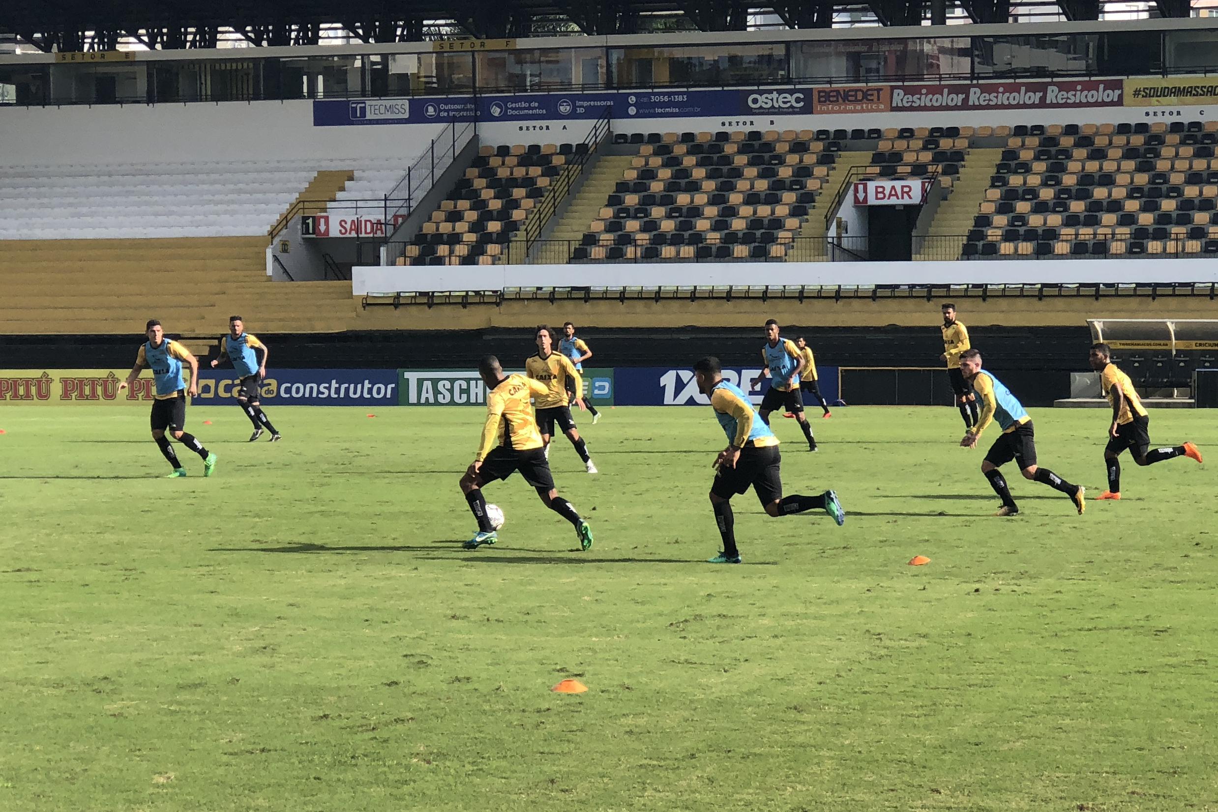 Legenda: Atletas do Criciúma durante treino no estádio Heriberto Hülse na manhã desta segunda-feira (14/05) Fotos: Fernando Ribeiro/www.criciuma.com.br Download