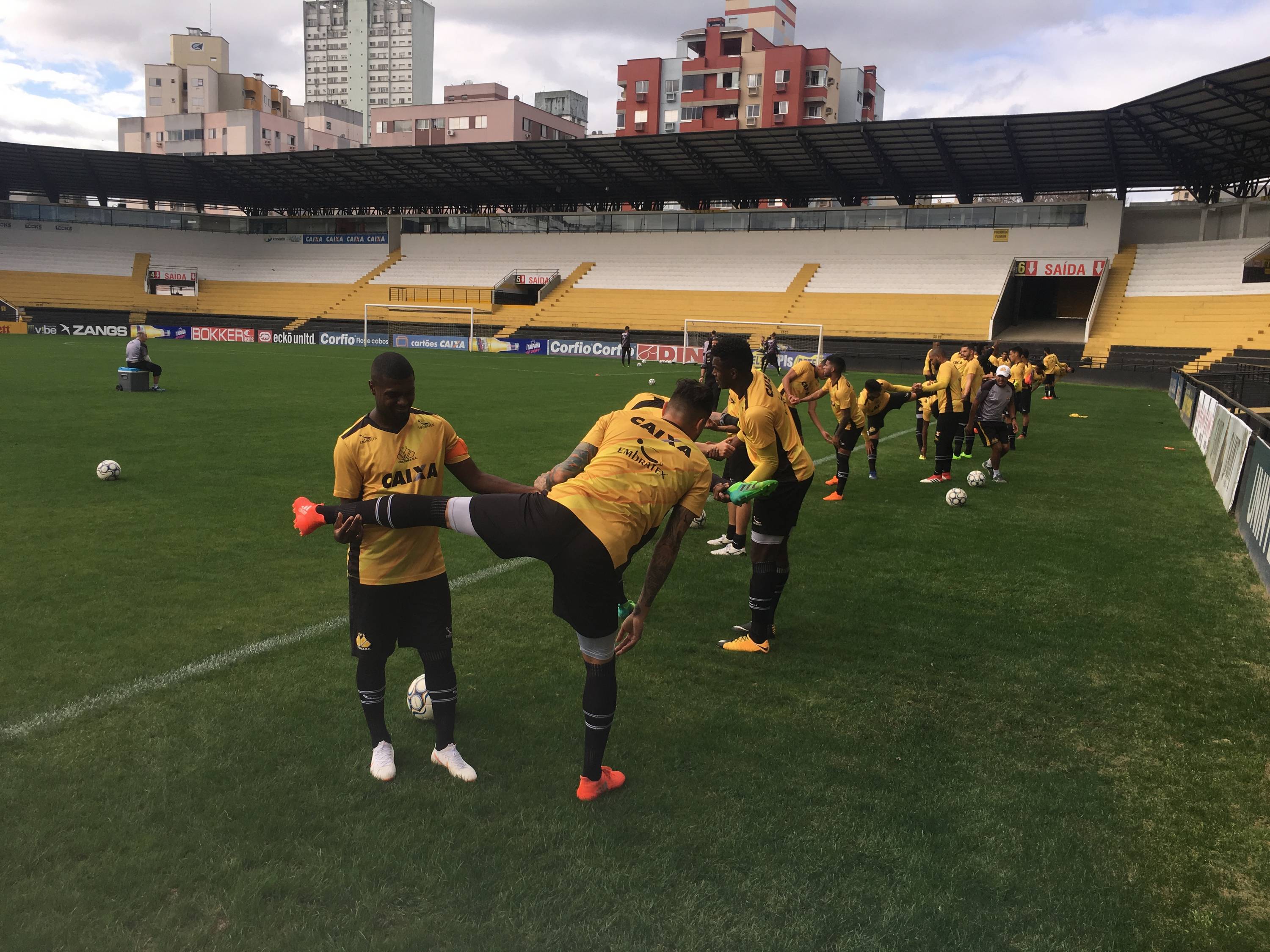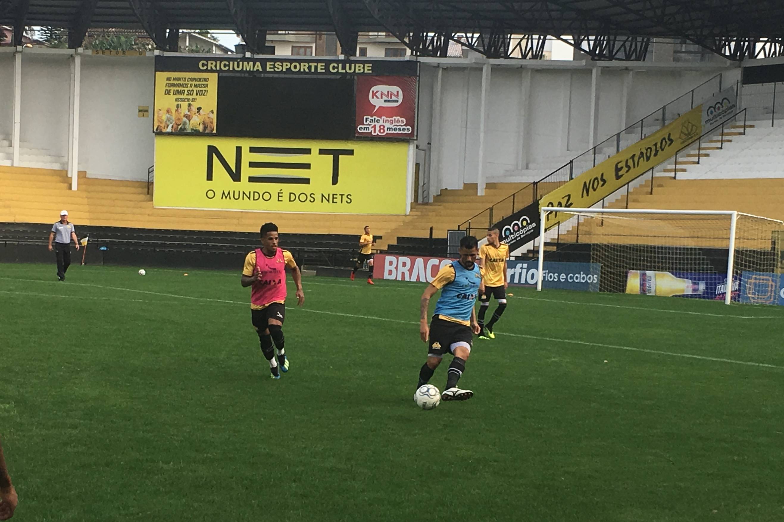Legenda: Atletas durante treino do Criciúma no estádio Heriberto Hülse na tarde desta terça-feira (18/09) Fotos: Fernando Ribeiro/www.criciuma.com.br Download