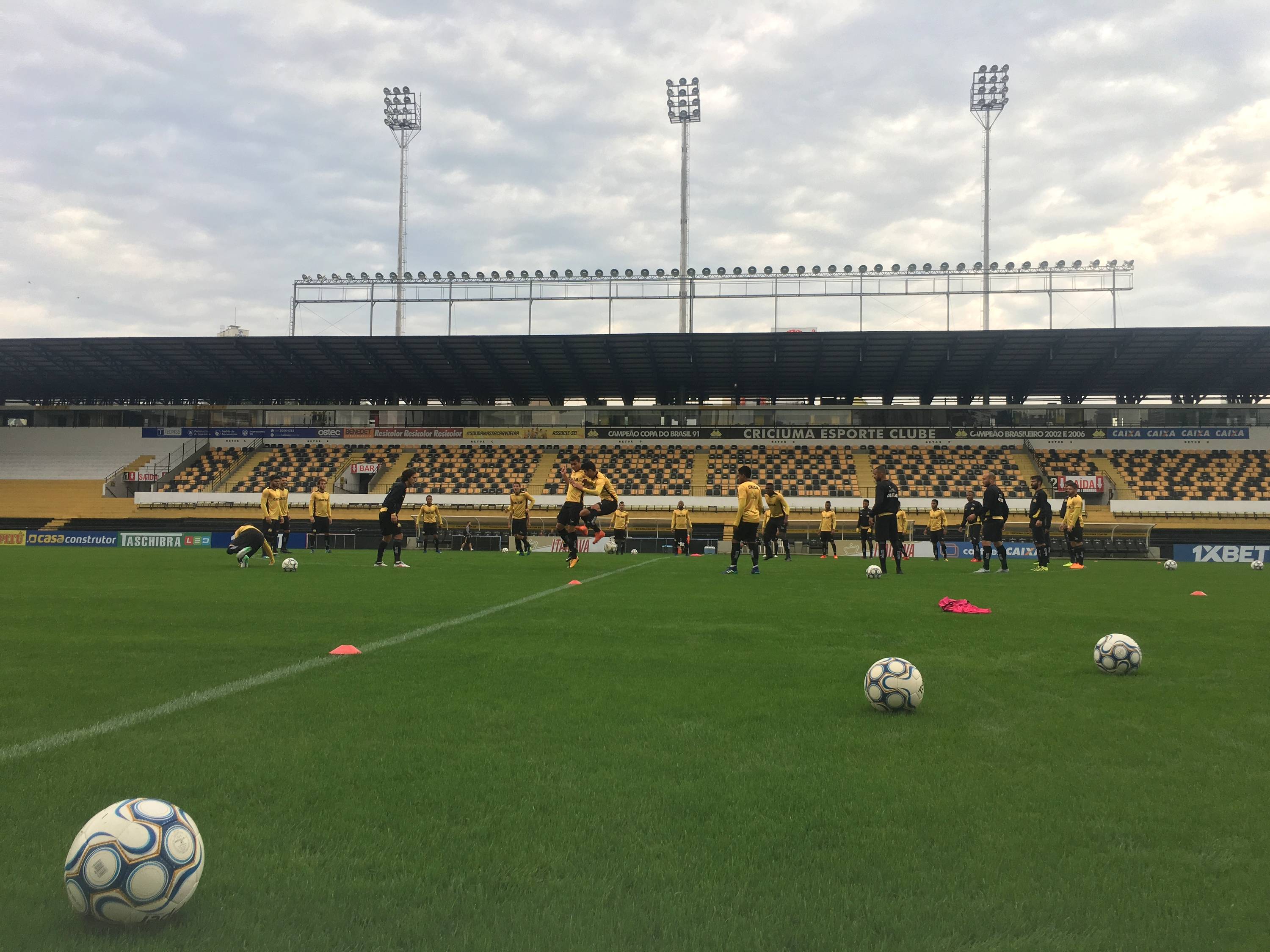 Legenda: Atletas do Criciúma durante treino no estádio Heriberto Hülse na manhã desta sexta-feira (29/06)