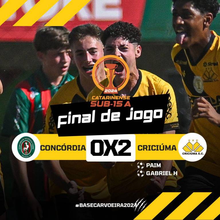 As equipes Sub-15 e Sub-17 do Criciúma conquistaram ótimos resultados fora de casa na disputa do Campeonato Catarinense. As categorias do Tigre enfrentaram o Concórdia pela 2ª rodada do returno na tarde deste sábado (02/06) no estádio Domingos Machado de Lima, na cidade do Oeste do estado. O Sub-15 venceu por 2 a 0 com gols de Paim e Gabriel e o Sub-17 garantiu a vitória por 3 a 0 com gols de Ryan e dois de Romarinho.