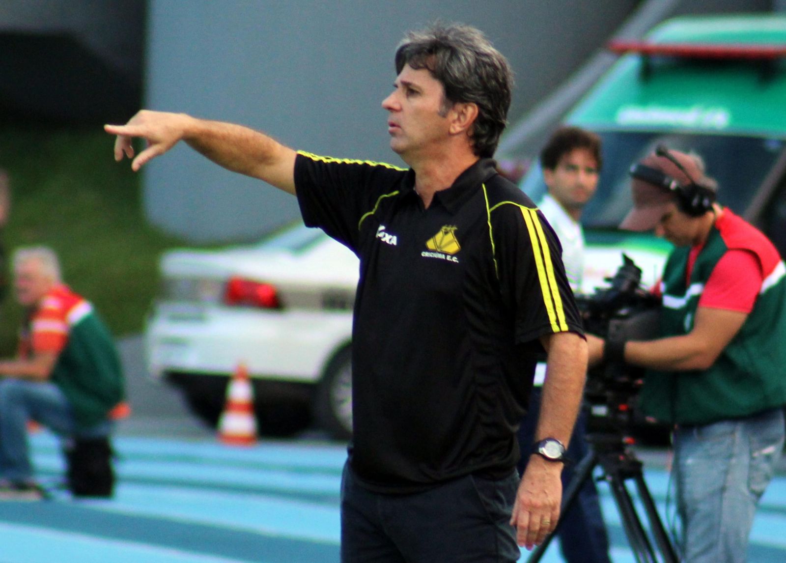 Caio Júnior orientando os jogadores durante a partida. Foto: Leonardo Zanin/criciumaec.com.br