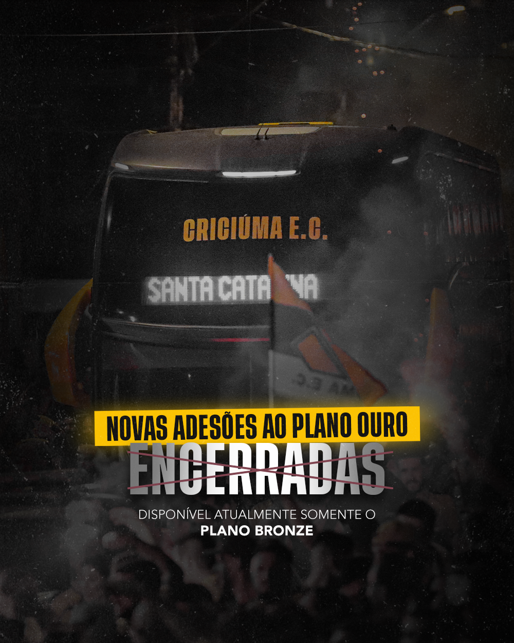 O Criciúma informa que irá suspender por tempo indeterminado, a partir desta terça-feira (23/09), as adesões ao plano Carvoeiro Ouro, que dá acesso às arquibancadas. A decisão ocorre devido a capacidade do estádio e o número de sócios adimplentes.