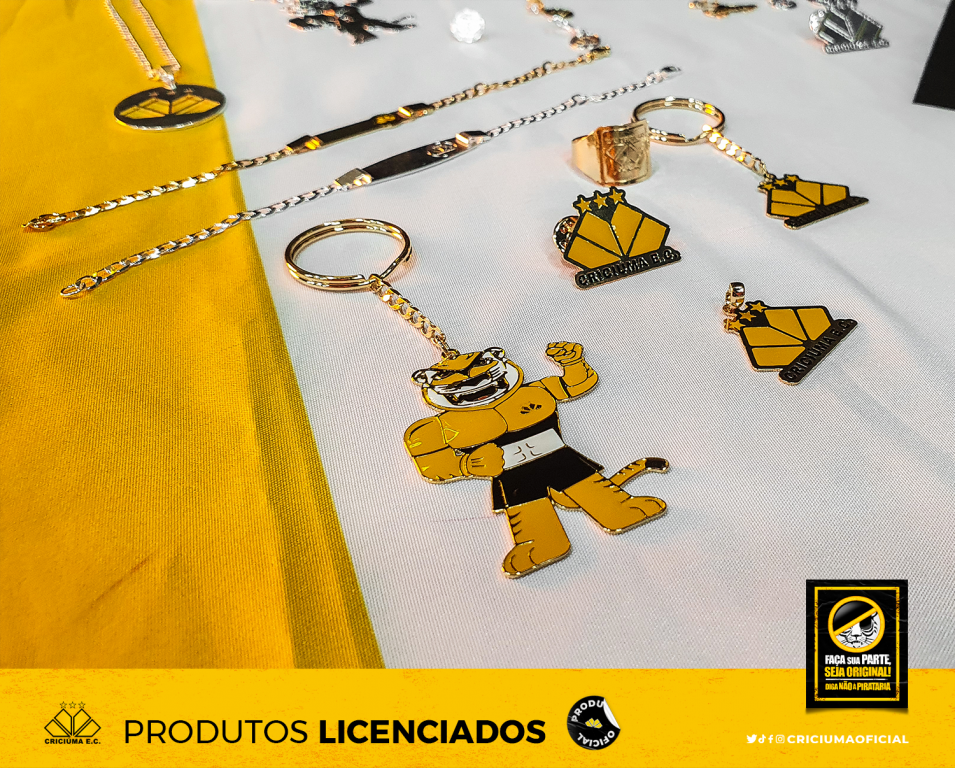 Para ter certeza de que você está levando um produto licenciado pelo Criciúma, procure o selo holográfico, indicando que aquele produto é oficial. O comércio ilegal e não-autorizado da marca aplicada em produtos, é crime. Portanto, denuncie sempre que encontrar alguém oferecendo qualquer mercadoria não-licenciada com a marca do Criciúma Esporte Clube.