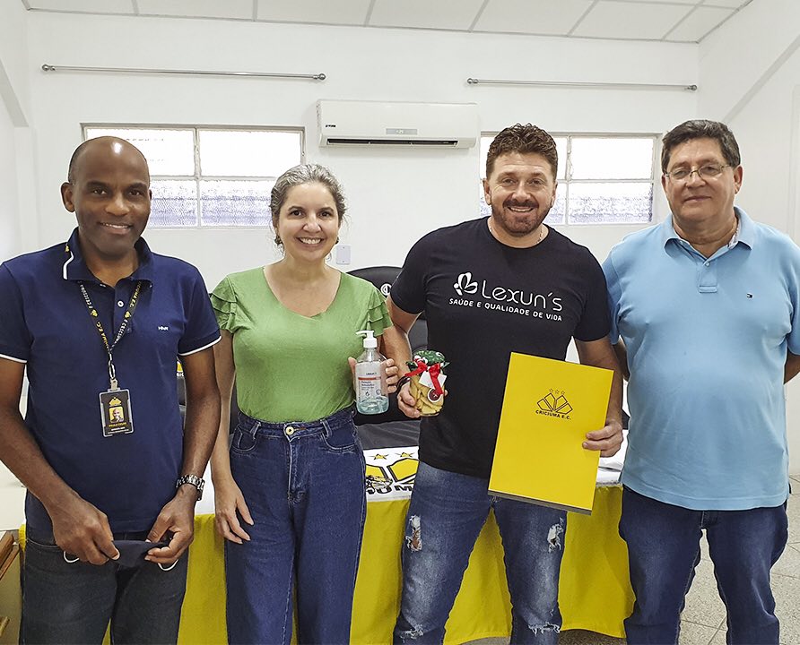 O Criciúma e a Lexun's Laboratório Nutracêutico renovaram a parceria para a temporada 2022. A empresa que oferece saúde e qualidade de vida aos seus clientes está com o clube desde 2017 e fornece produtos para uso do departamento médico do Tigre. O encontro, que ocorreu nesta segunda-feira (24/01) na sala da presidência do clube, no estádio Heriberto Hulse, contou com a presença do vice-presidente financeiro Vilmar Guedes, do gerente administrativo Paulo César Bitencourt, da gerente comercial e de marketing Viviani Olimpio e do proprietário da Lexun’s Alexandre Garcia Nunes.