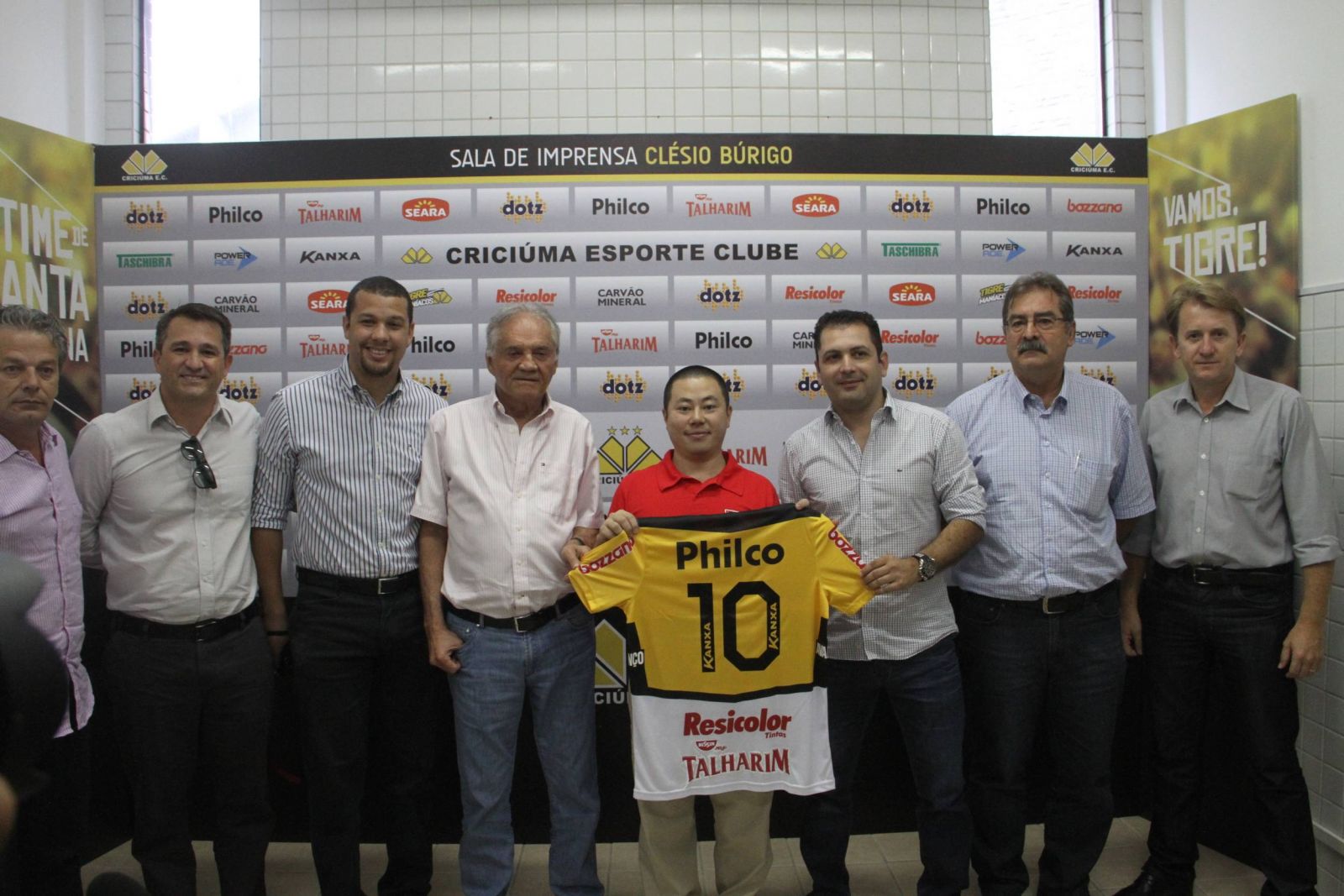 O gerente geral comercial da Nissin-Ajinomoto, Shimpei Ashina, o presidente Antenor Angeloni e o diretor do Tigre, Claudio Gomes, concederam entrevista coletiva na manhã desta quarta-feira (19/02), na Sala de Imprensa Clésio Búrigo, falar sobre a parceria entre o clube e a empresa, que será patrocinadora do Criciúma na temporada 2014. Outros diretores do Tigre também estiveram presentes. O contrato de patrocínio encerra no final do ano e o Criciúma é o único clube de futebol que a Nissin está investindo.