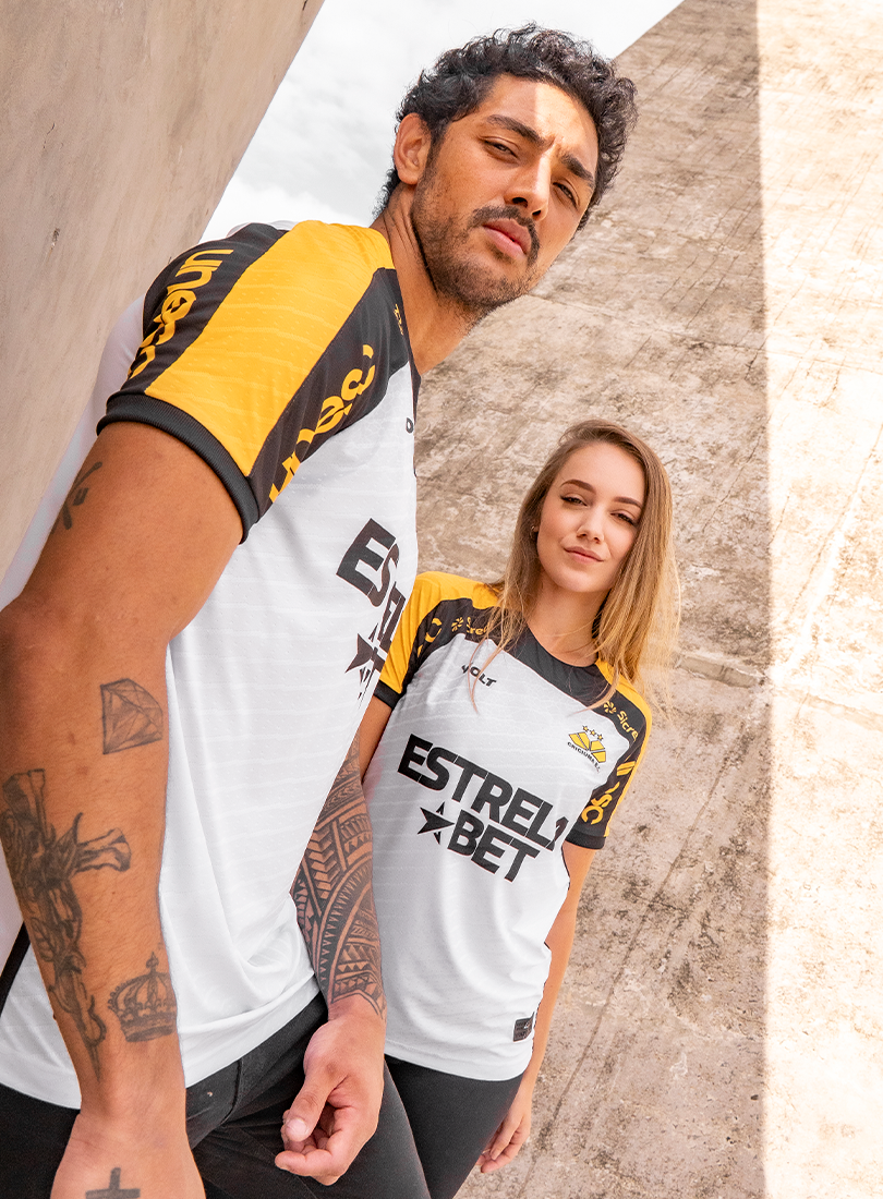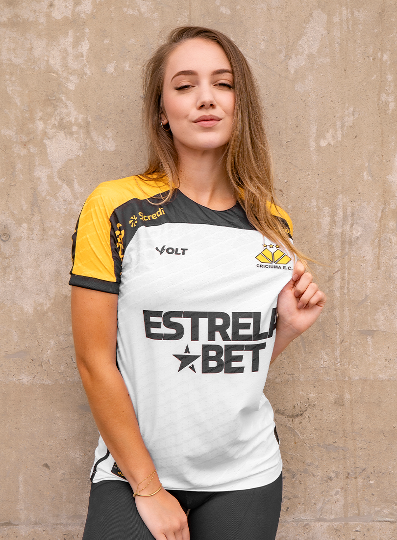 O Criciúma Esporte Clube e a Volt Sport apresentam a nova camisa padrão 2 para a temporada, trazendo um design que homenageia um dos elementos mais icônicos da cidade: o petit-pavé. A peça, predominantemente branca, conta com os ombros em amarelo e preto e estampa especial inspirada nos tradicionais mosaicos que fazem parte da identidade cultural de Criciúma.