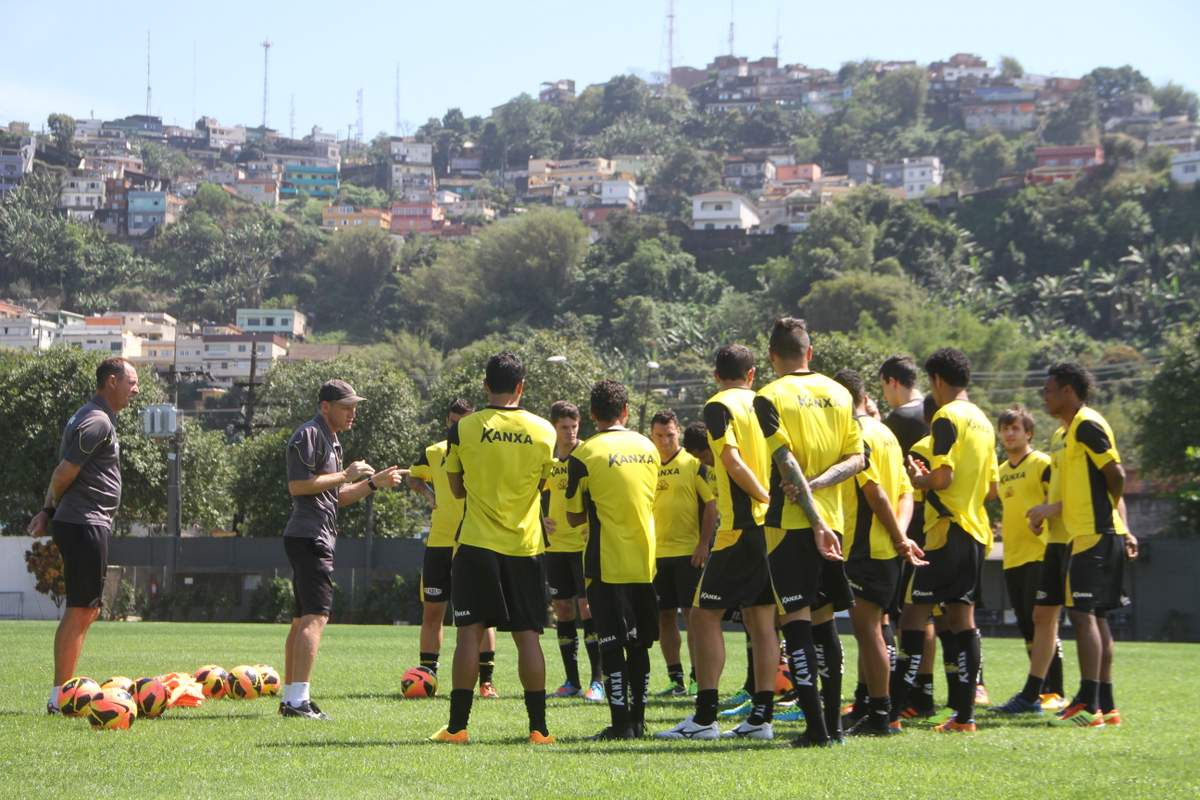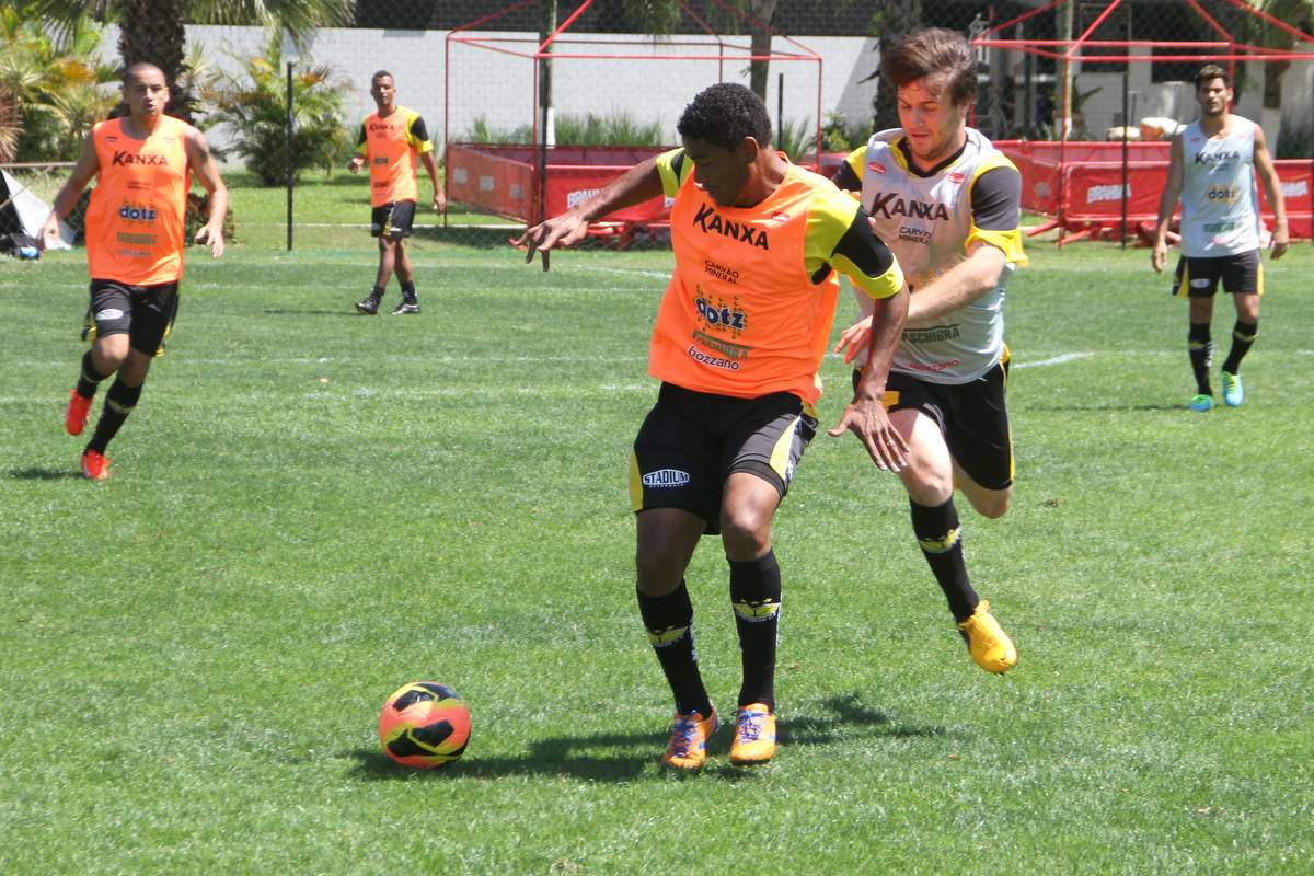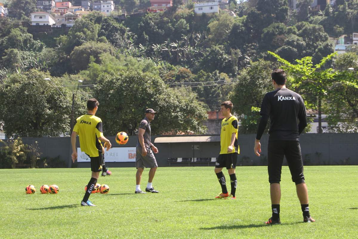 Na primeira parte do treino deste sábado, o técnico Sílvio Criciúma, acompanhado dos demais integrantes da comissão técnica, conversou com os atletas. Depois do aquecimento, os jogadores fizeram uma atividade de dois toques com o gramado reduzido.