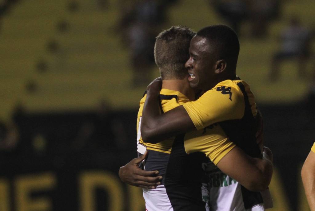 Jefferson (D) ficou emocionado com o gol. Foto: Fernando Ribeiro/www.criciuma.com.br