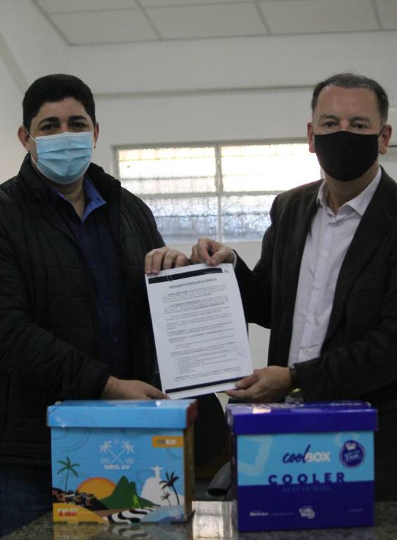 Diretor da Gelos Cubinho, Suenoni Paladini, e o presidente do Tigre, Anselmo Freitas. Foto: Celso da Luz/www.criciuma.com.br