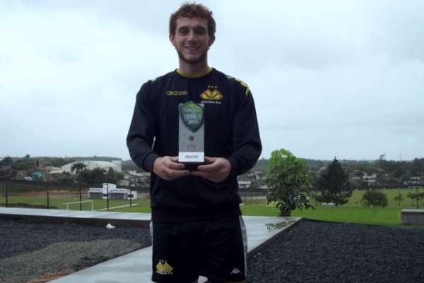 Ianson com o troféu de melhor zagueiro. Foto: Douglas Sartor/www.criciuma.com.br