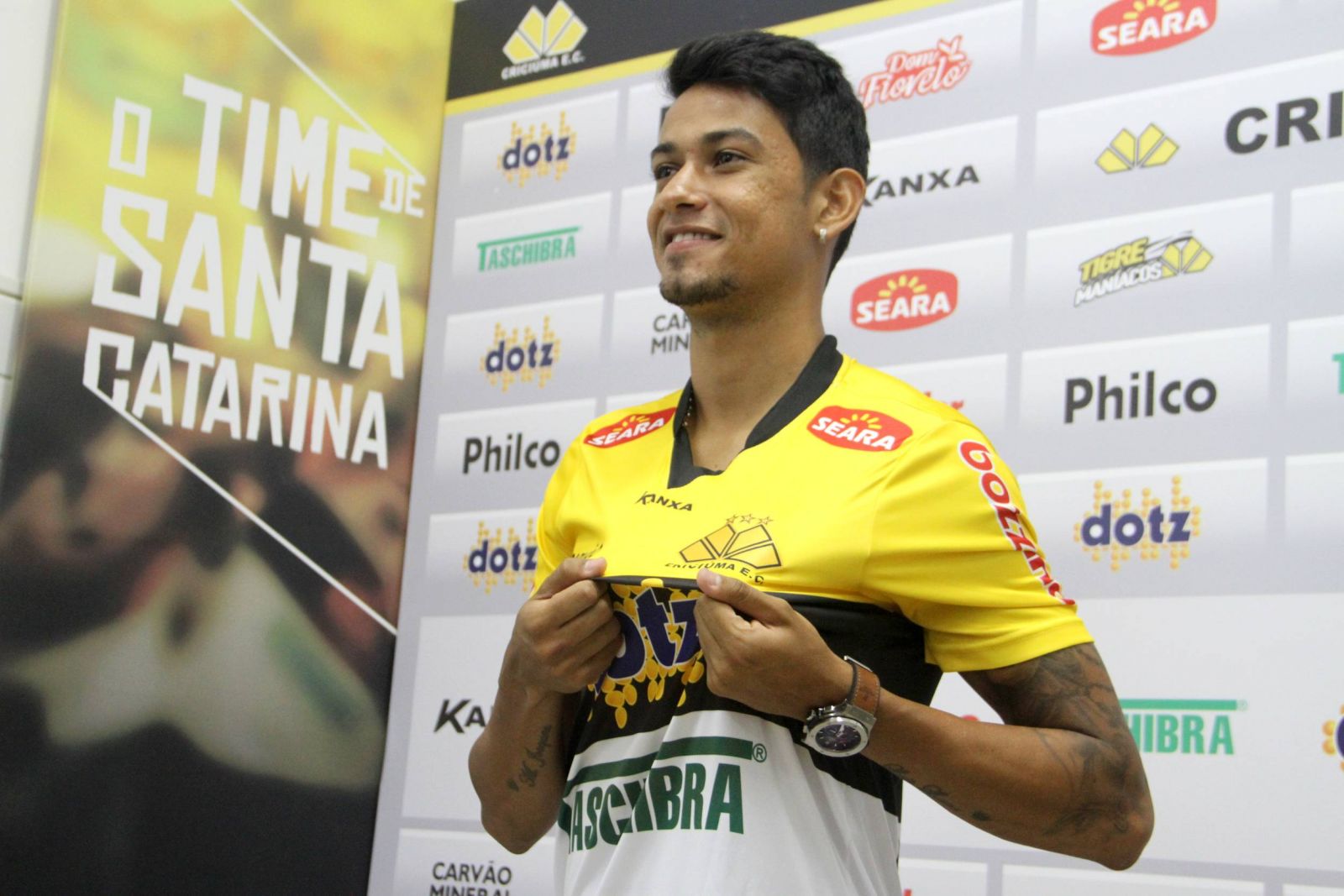 O atacante Lucca chegou nesta quinta-feira (16/01) e já foi apresentado oficialmente como reforço do Criciúma para a temporada 2014. O atleta, campeão da Série A pelo Cruzeiro no ano passado, irá vestir novamente as cores tricolores para as disputas do Campeonato Catarinense, Copa do Brasil e Série A do Brasileiro. A apresentação foi feita pelo diretor de futebol, Cláudio Gomes.
