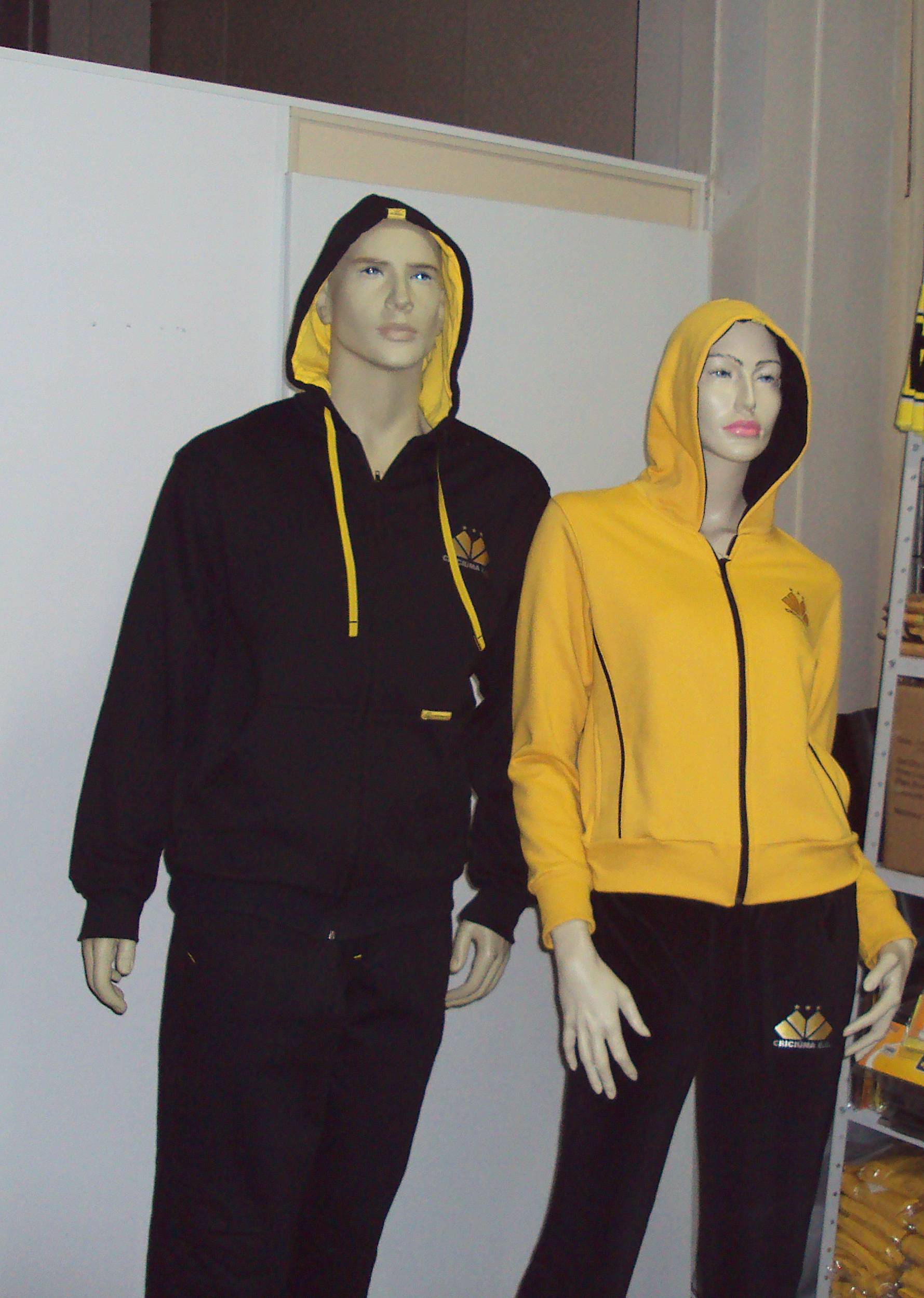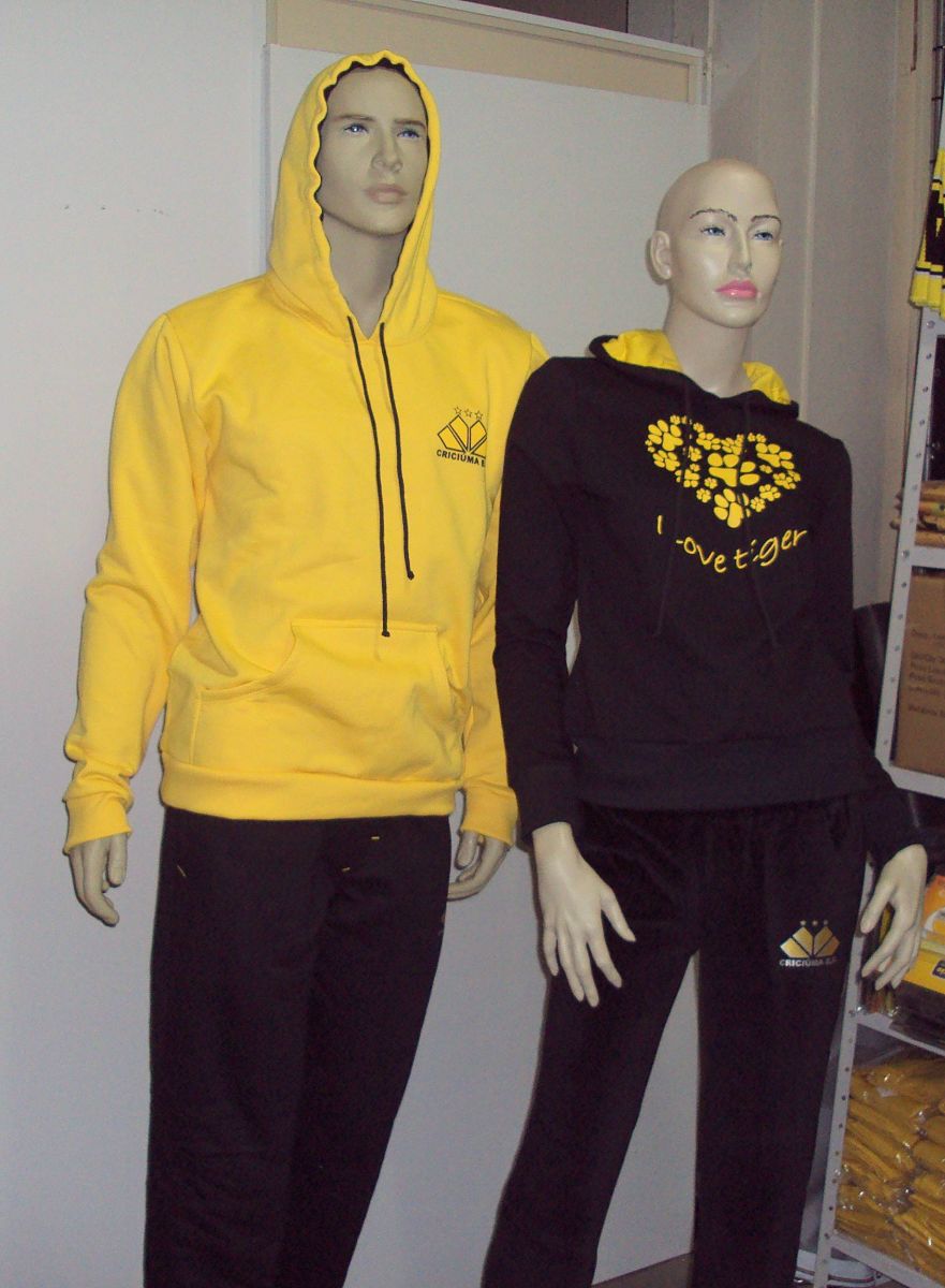 Um dos produtos é o moletom masculino e feminino, com ou sem zíper. O torcedor pode escolher entre as cores amarela e preta. Outra opção é a calça de moletom. Para as mulheres, ainda tem agasalhos plush. As peças de inverno vestem desde os pequenos até os adultos.