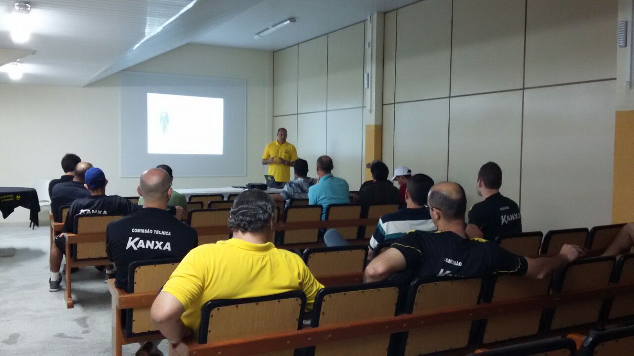 O projeto “Discutindo a Ciência Aplicada ao Futebol” seguiu na tarde desta quinta-feira (18/09) no estádio Heriberto Hülse. O tema desta semana foi “Treinamento de Goleiros – Da iniciação ao profissional”, conduzido pelo preparador de goleiros da equipe profissional, Rogério Maia.