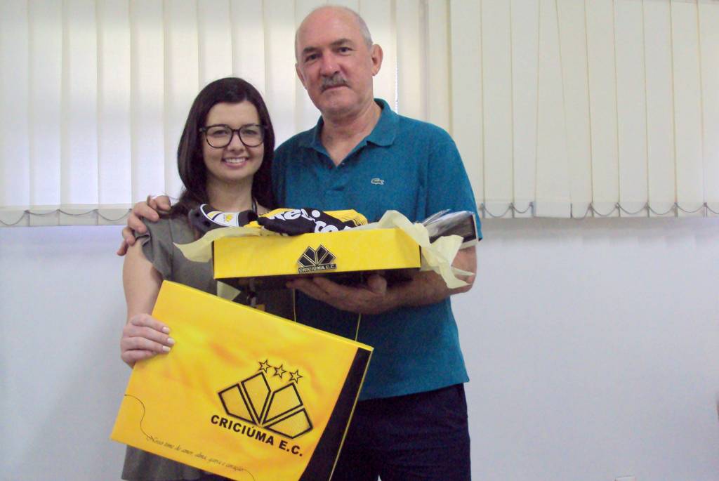 O sócio do Criciúma, Roberto José Campos, recebeu na tarde desta quinta-feira (17/12) o kit com produtos oficiais do Tigre. Ele foi o ganhador de dezembro da promoção, que contempla todo mês um associado em dia com itens exclusivos do clube. Campos esteve no departamento de marketing, no estádio Heriberto Hülse.