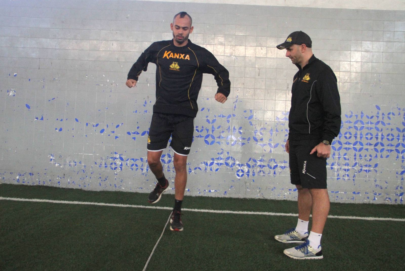 Danilo Alves e o fisiologista Cleber Medeiros. Foto: Fernando Ribeiro/criciumaec.com.br