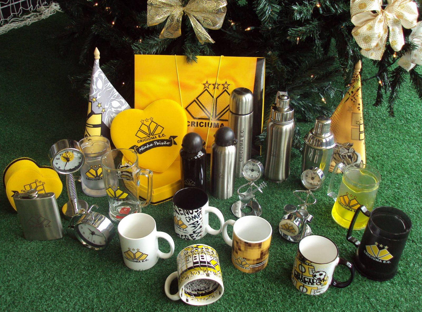No estabelecimento, o torcedor encontra presentes que variam de R$ 12,00 a R$ 89,00. São chaveiros, copos, canecas, garrafas térmicas, canetas metálicas, sandálias, bonés, relógios, lixo para carro e máscara para dormir. Todos são produtos oficiais do Criciúma.