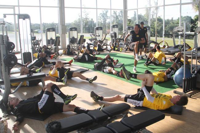 Atletas durante trabalho de core. Foto: Fernando Ribeiro/www.criciuma.com.br