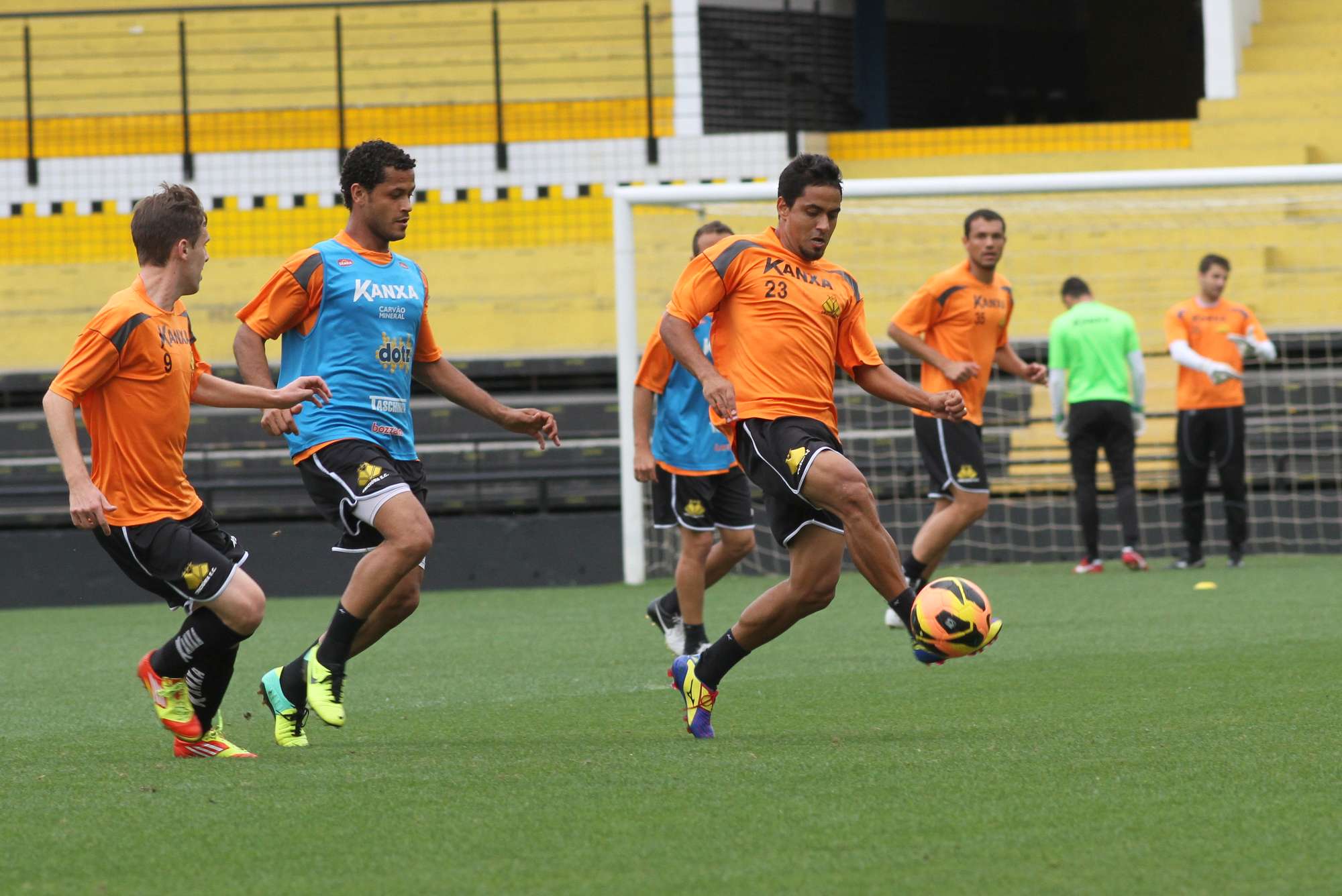 Legenda: Volante Elton durante treino no estádio Heriberto Hülse na tarde desta quinta-feira (28/11)