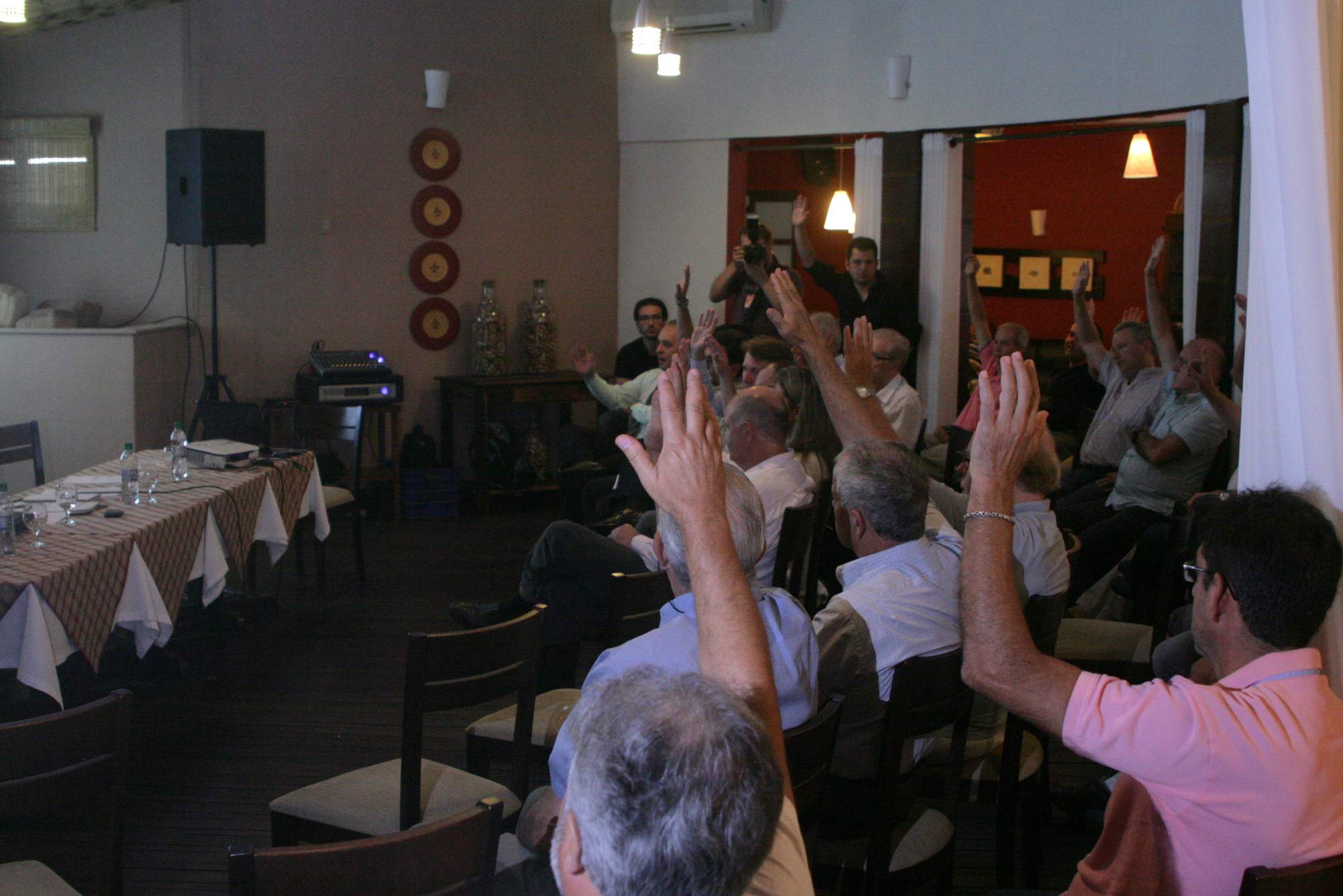 Legenda: Reunião do Conselho Deliberativo do Criciúma Esporte Clube ocorreu na noite desta quarta-feira (16/01) no Centro de Eventos Oasis. Na foto, o presidente Antenor Angeloni
