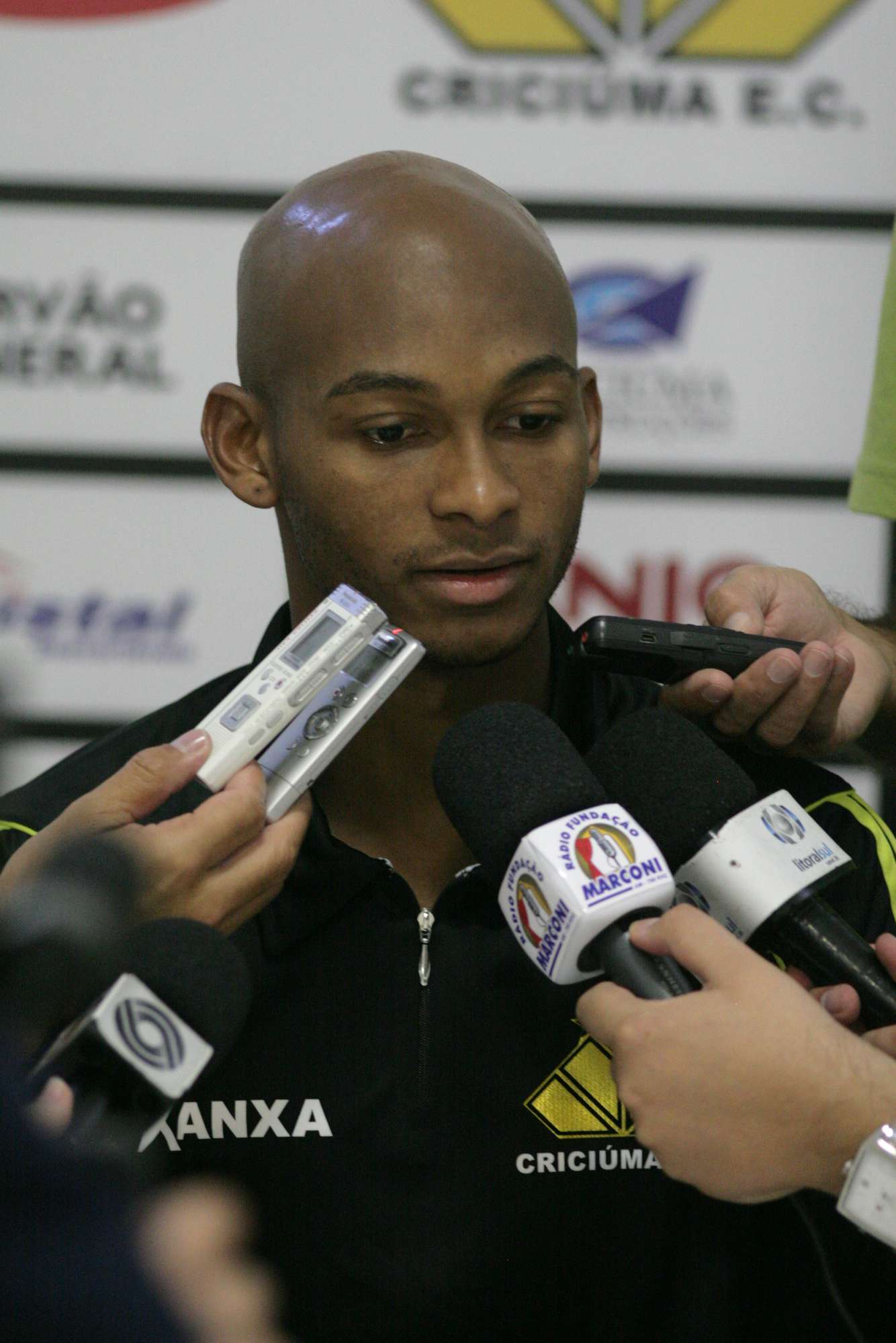 Legenda: Meia Tartá concedeu entrevista coletiva na sala de imprensa do estádio Heriberto Hülse na manhã desta terça-feira (29/01)