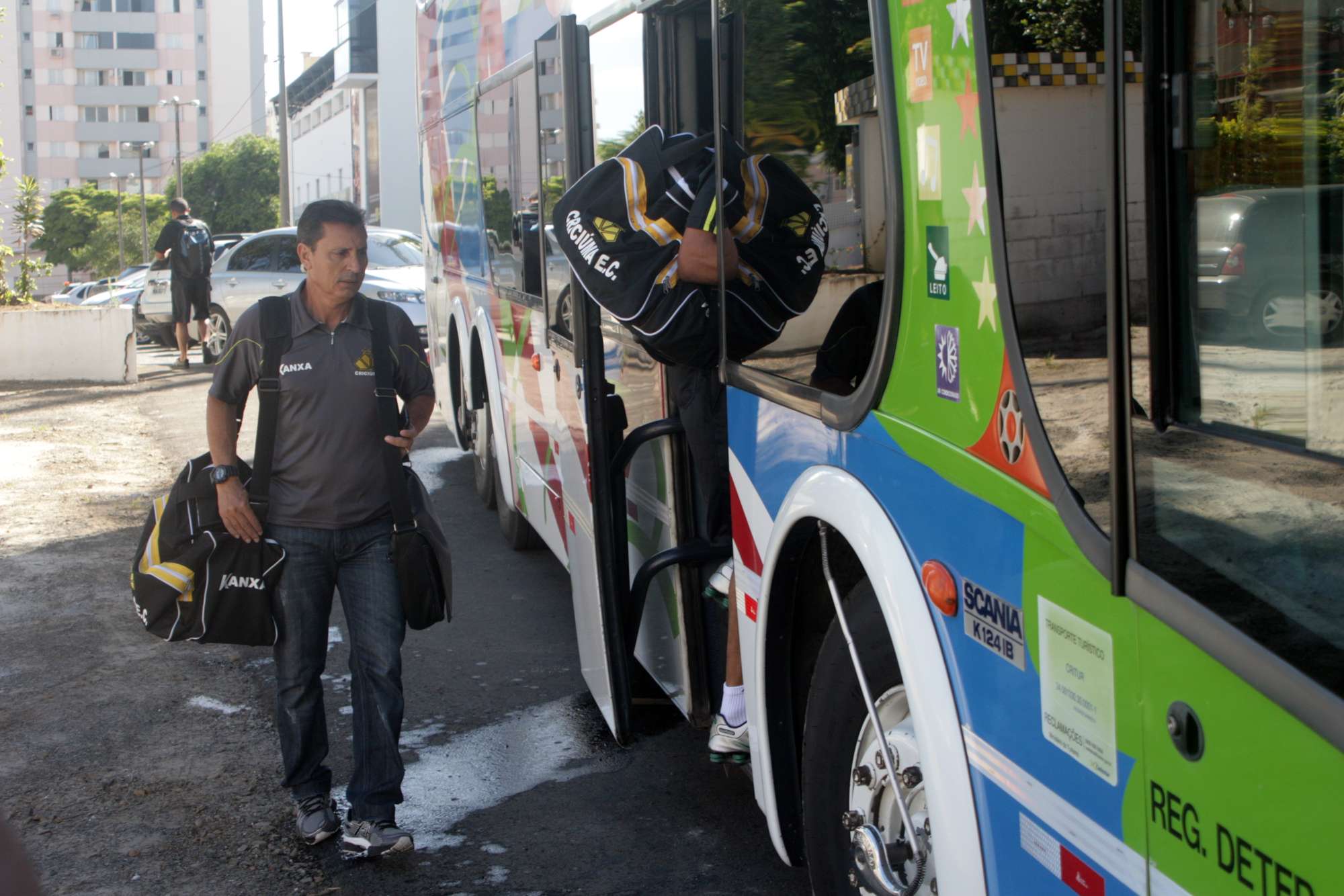 Legenda: Delegação do Criciúma embarcou na manhã desta terça-feira (29/01) com destino a Xanxerê. Na foto, o técnico Paulo Comelli
