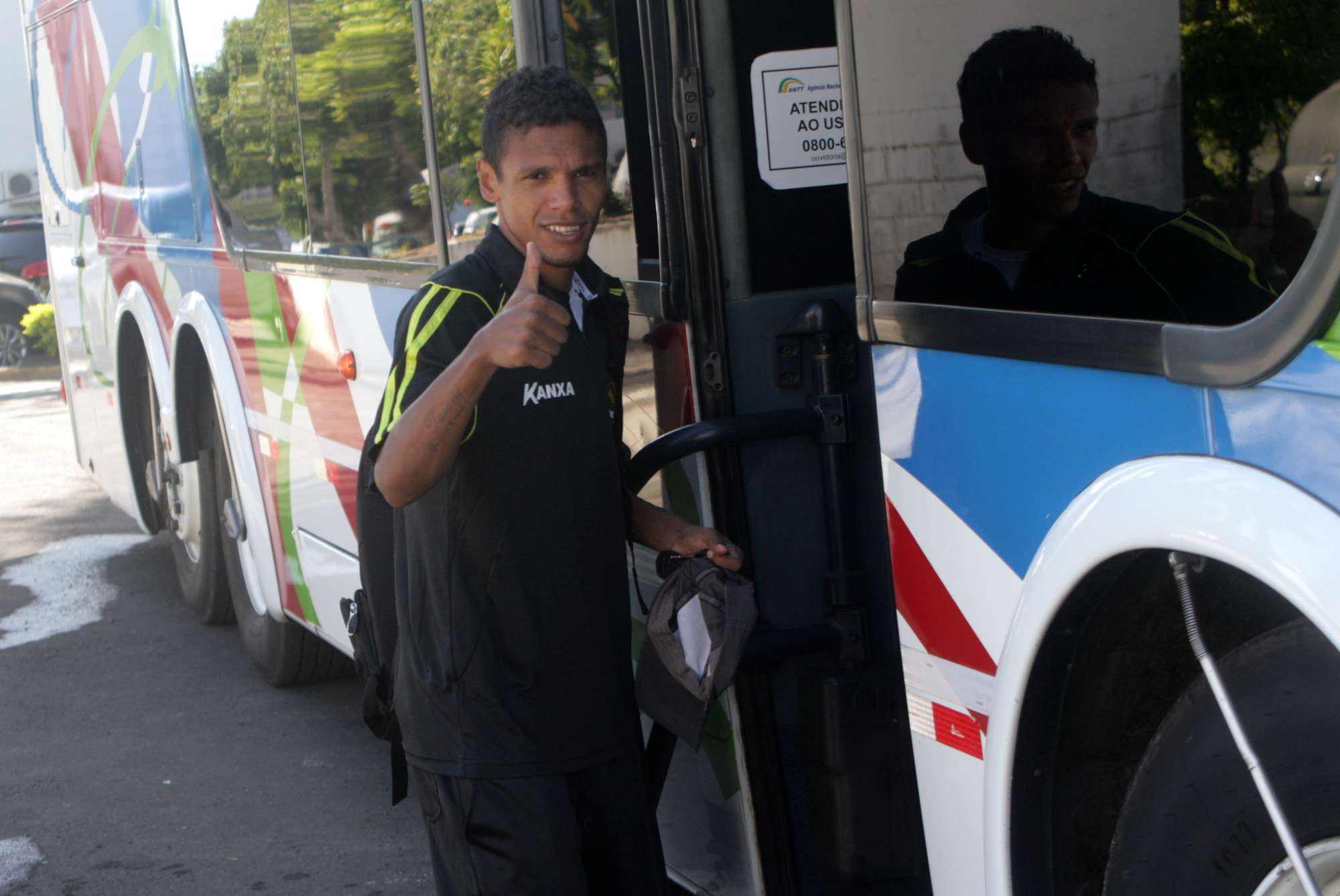 Legenda: Delegação do Criciúma embarcou na manhã desta terça-feira (29/01) com destino a Xanxerê. Na foto, o atacante Fabinho