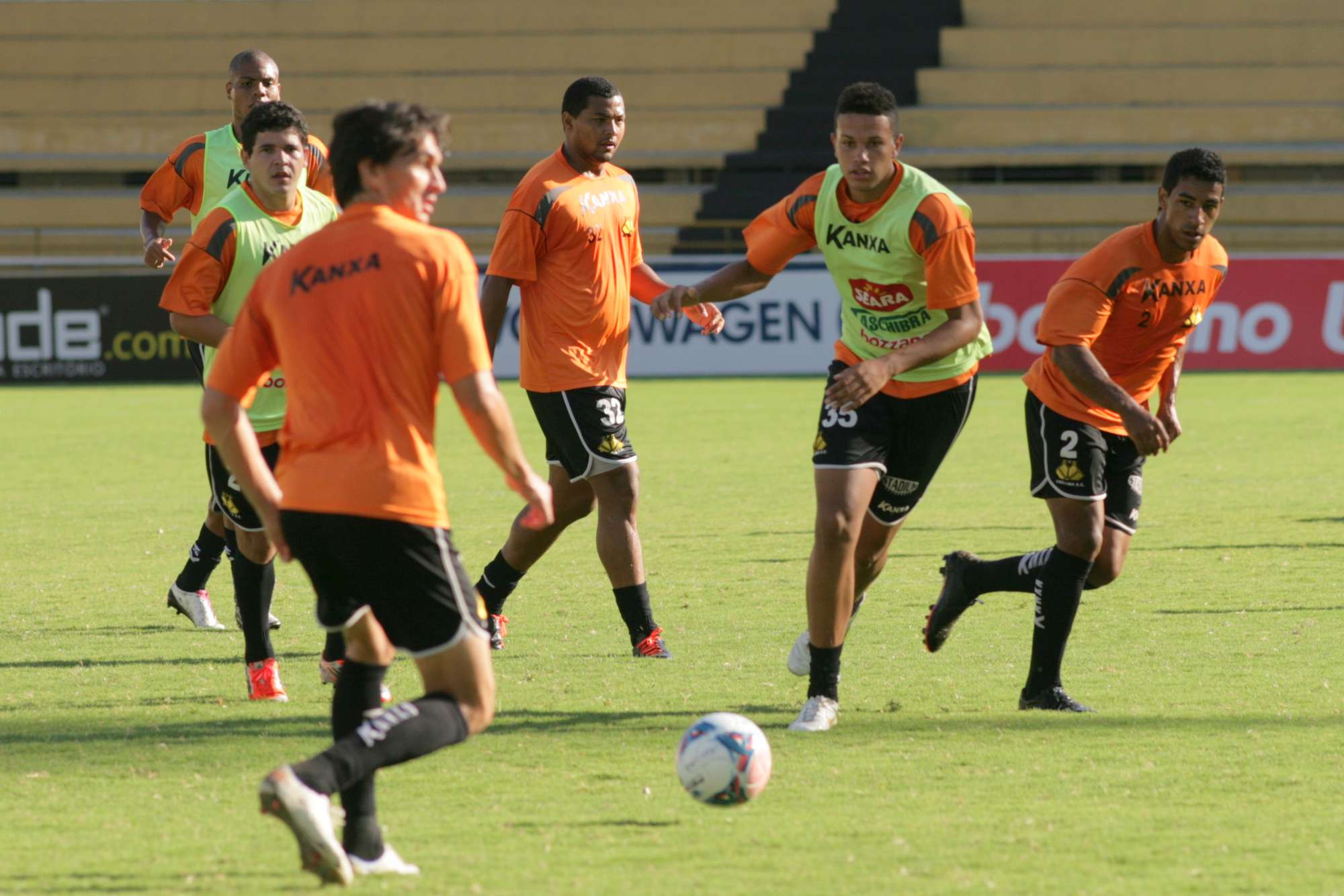 Legenda: Treino tático na manhã desta terça-feira (29/01) no estádio Heriberto Hülse. Na foto, Matheus Ferraz (E) e Ivo (D)