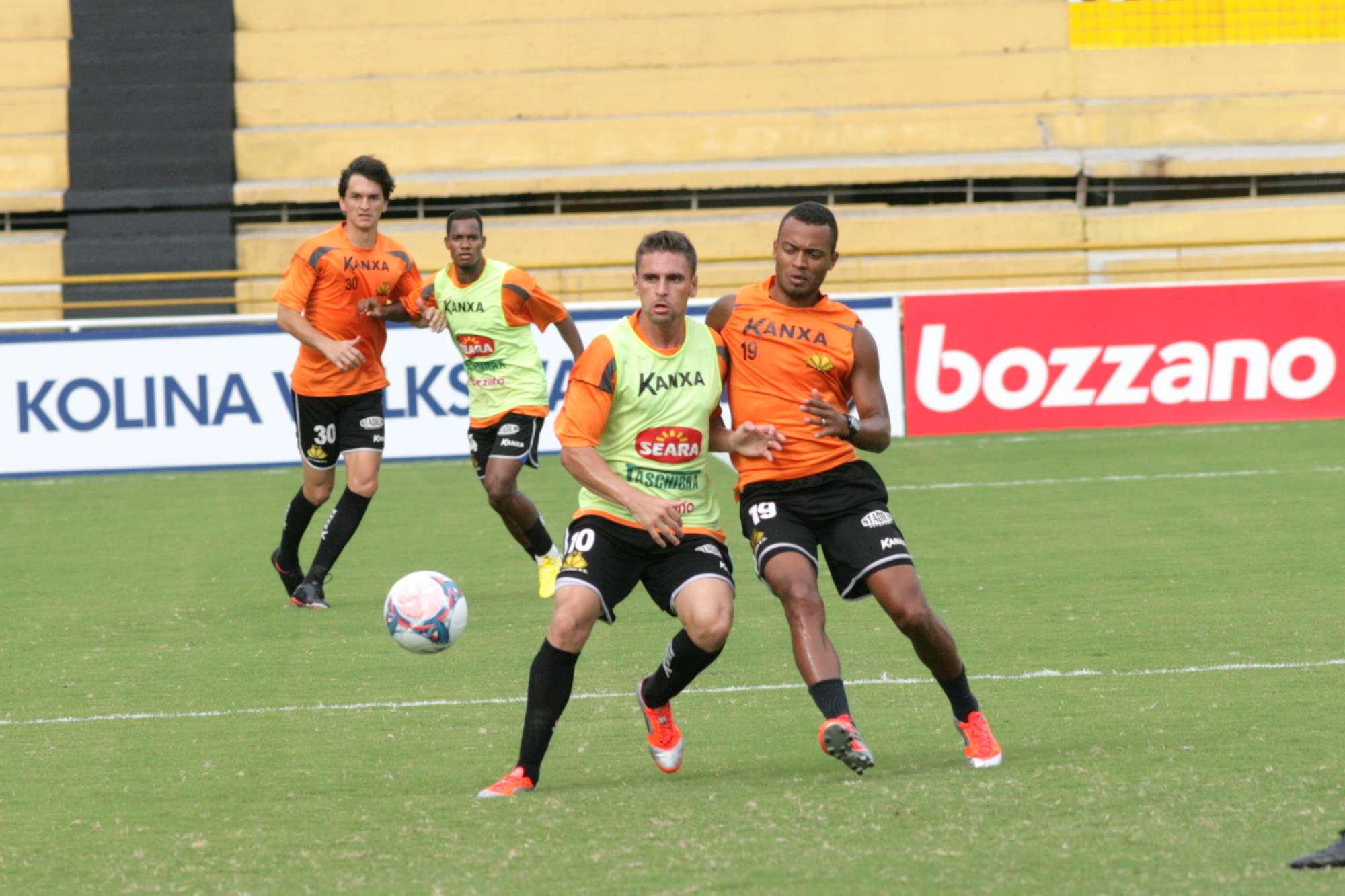 Legenda: Treino no estádio Heriberto Hülse na tarde desta sexta-feira (25/01). Na foto, o atacante Zé Carlos (E) e o volante Samuel (D)