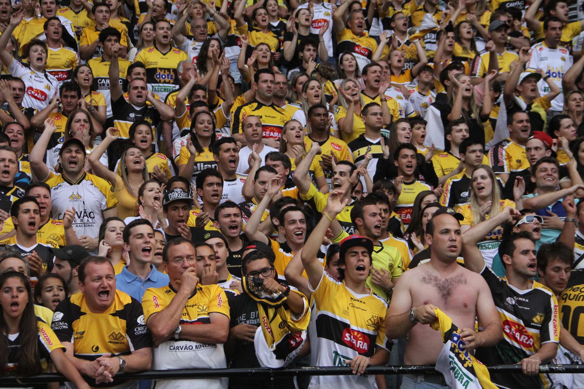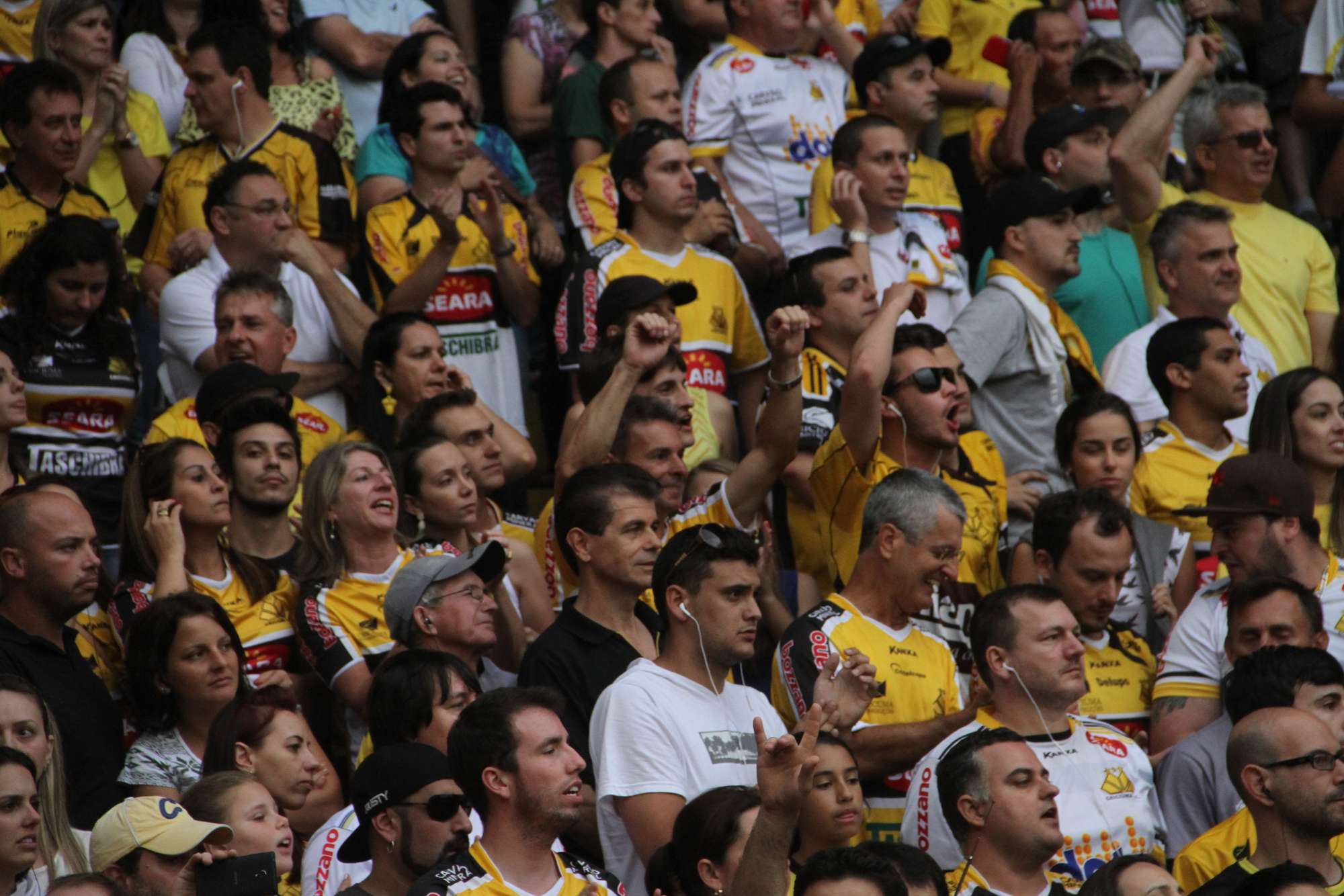 Legenda: Torcida do Criciúma incentivou o time do início ao fim na vitória em cima do São Paulo pelo placar de 1 a 0 na tarde deste domingo (01/12) no estádio Heriberto Hülse, pela 37ª rodada do Campeonato Brasileiro da Série A