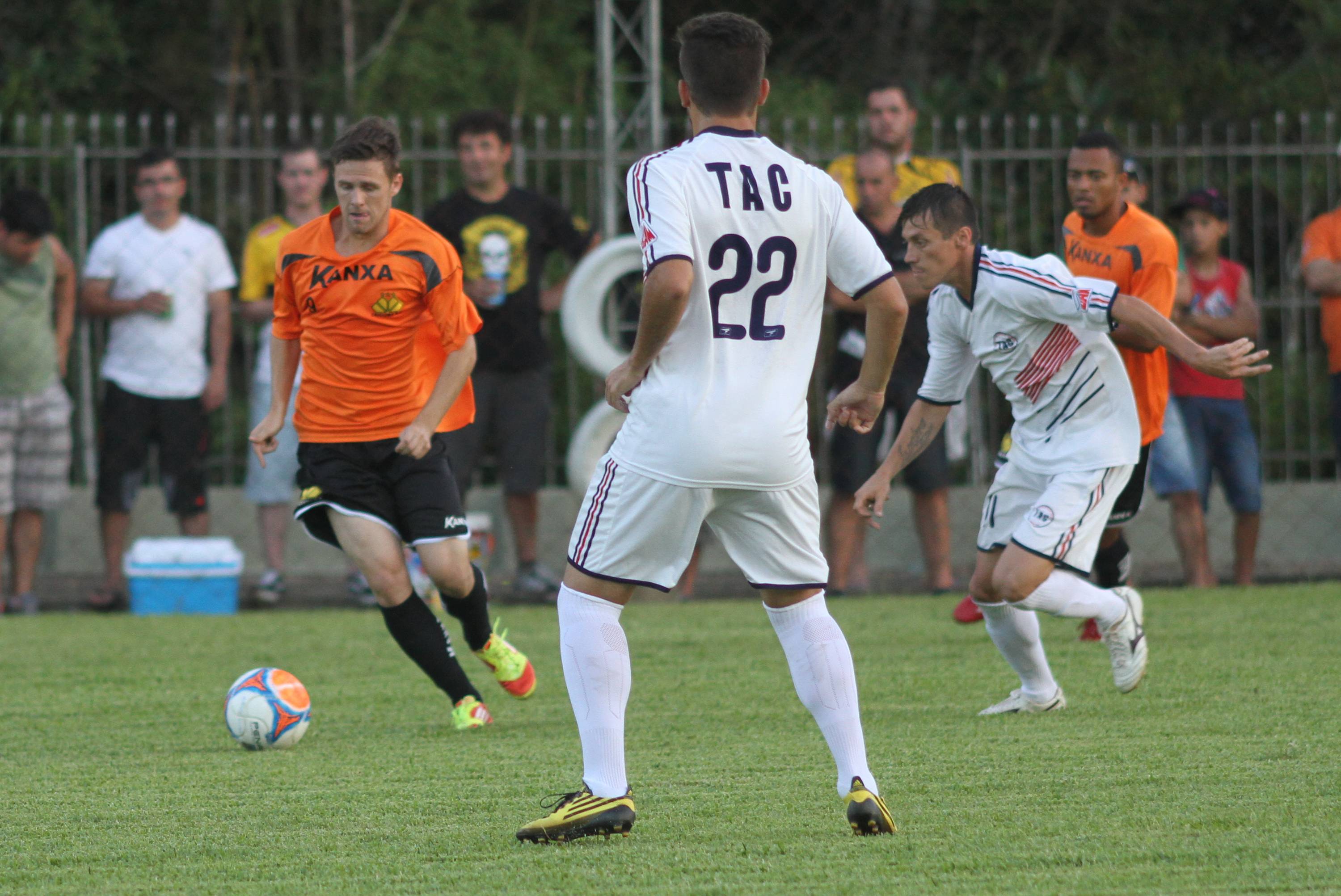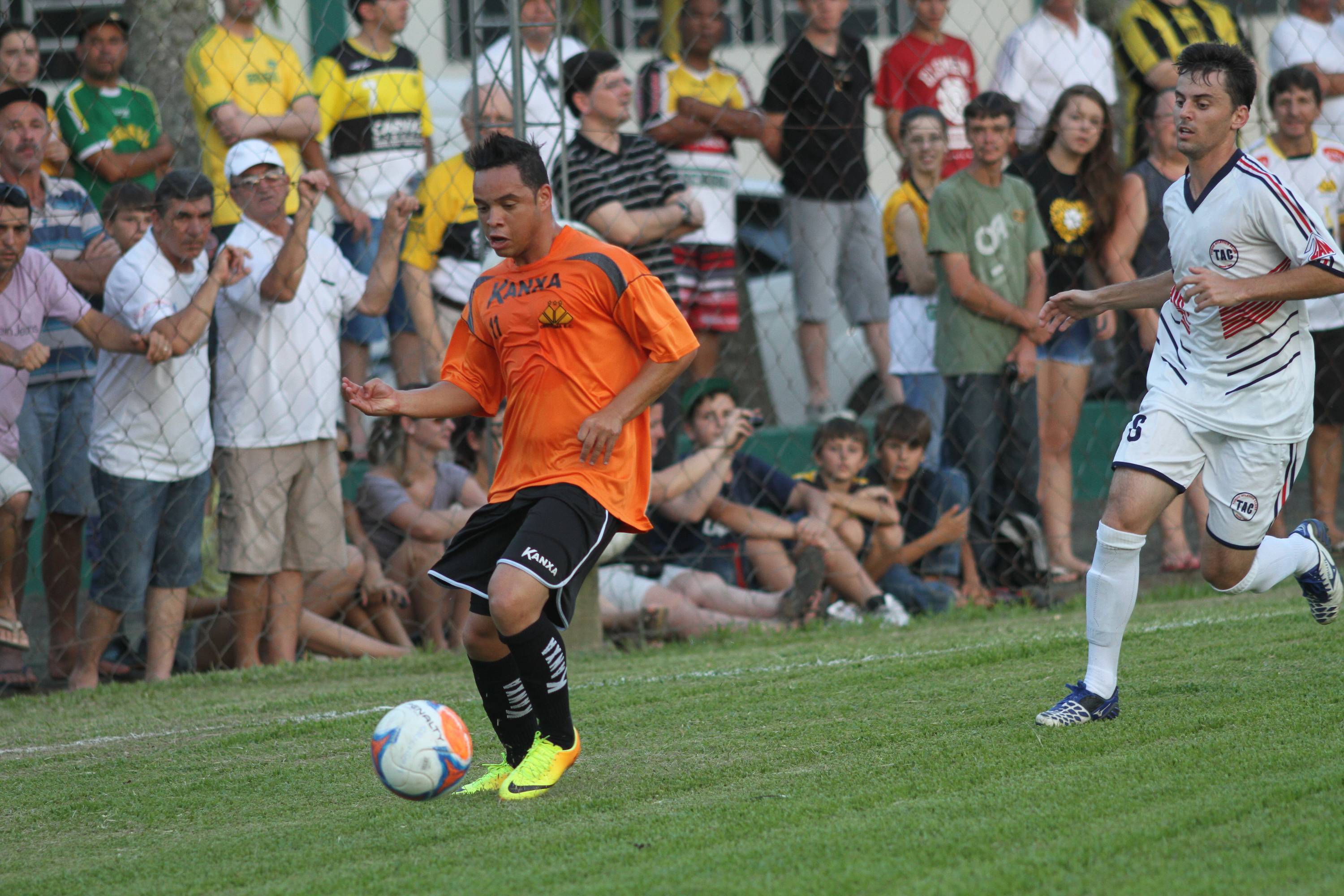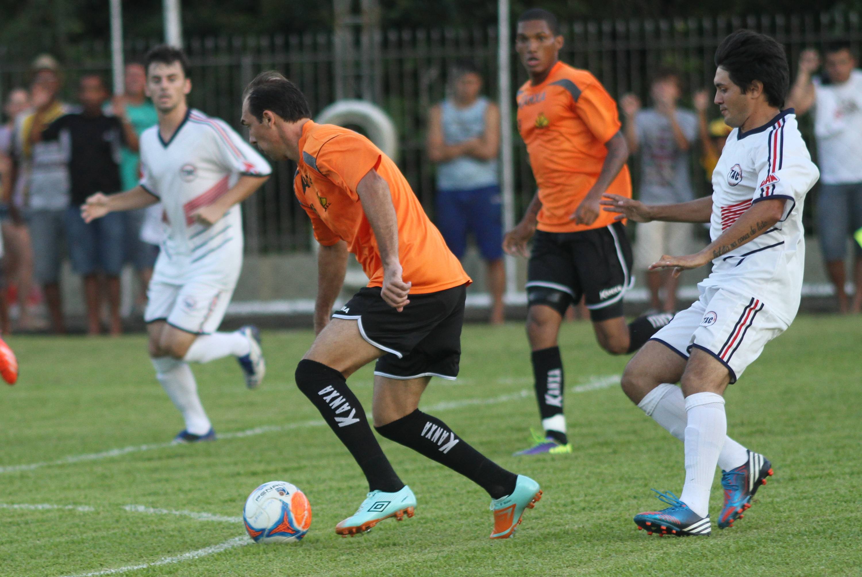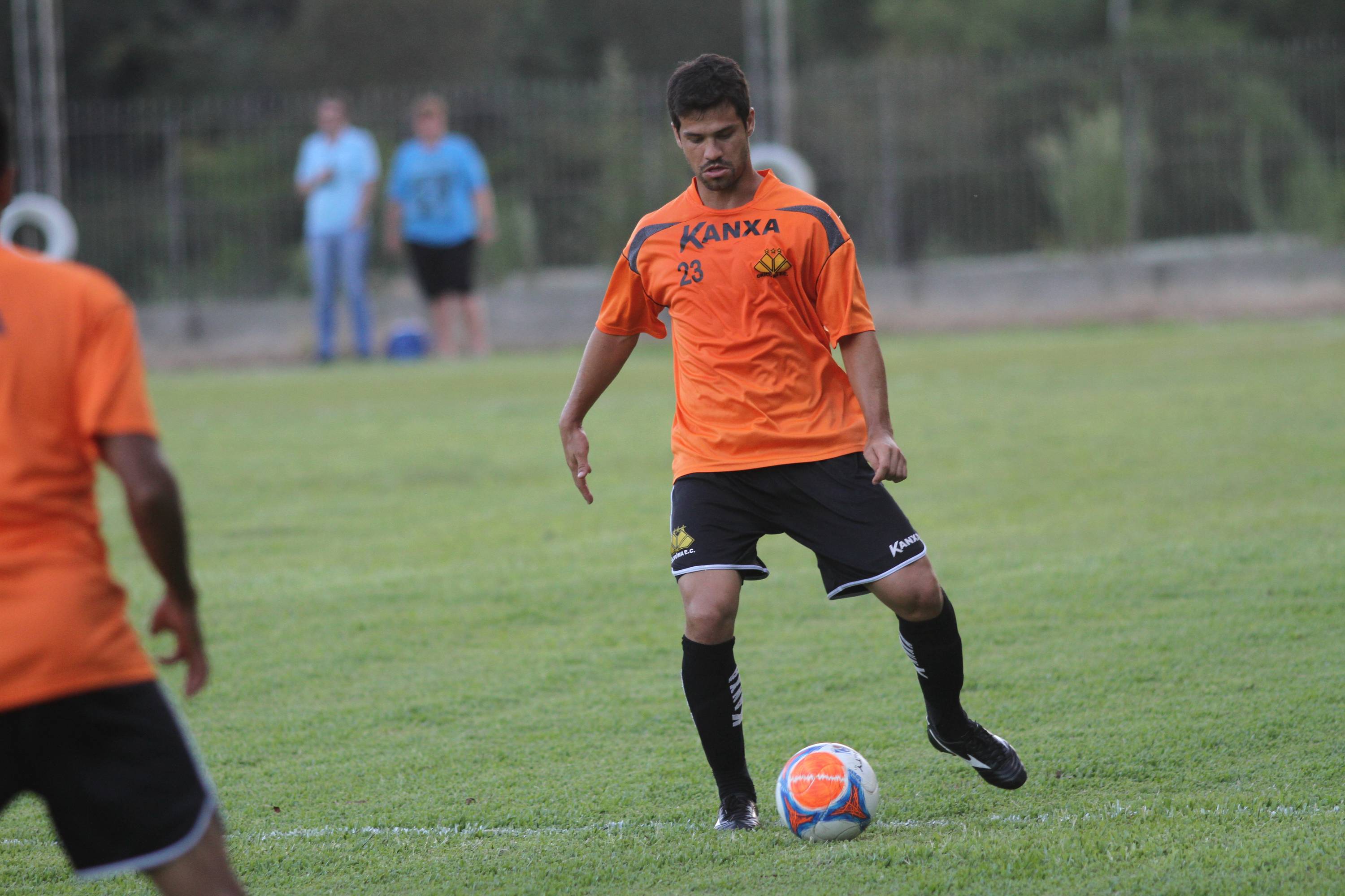Legenda: Lateral esquerdo Rogério durante vitória do Criciúma contra combinado de atletas amadores da região no campo da Cersul, em Turvo, na noite desta terça-feira (21/01)
