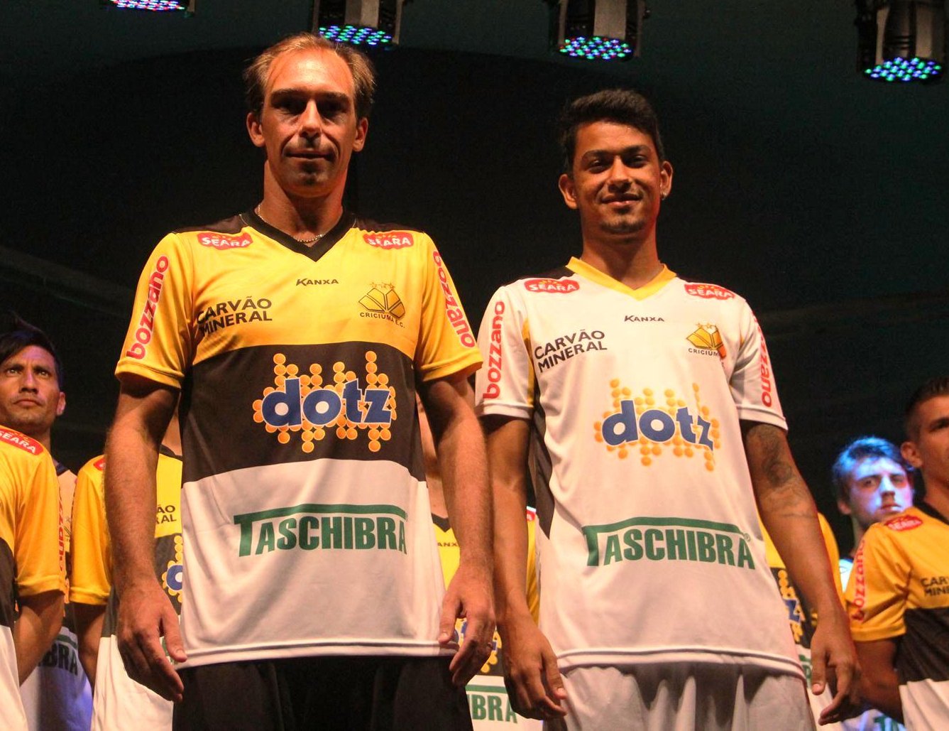 O Criciúma apresentou os novos uniformes que serão utilizados na temporada 2014, na noite desta quinta-feira (23/01), em um evento que contou com grande participação da torcida, no estádio Heriberto Hülse. Os ídolos do Tigre, Paulo Baier e Lucca, foram os atletas escolhidos para vestir pela primeira vez o novo manto.