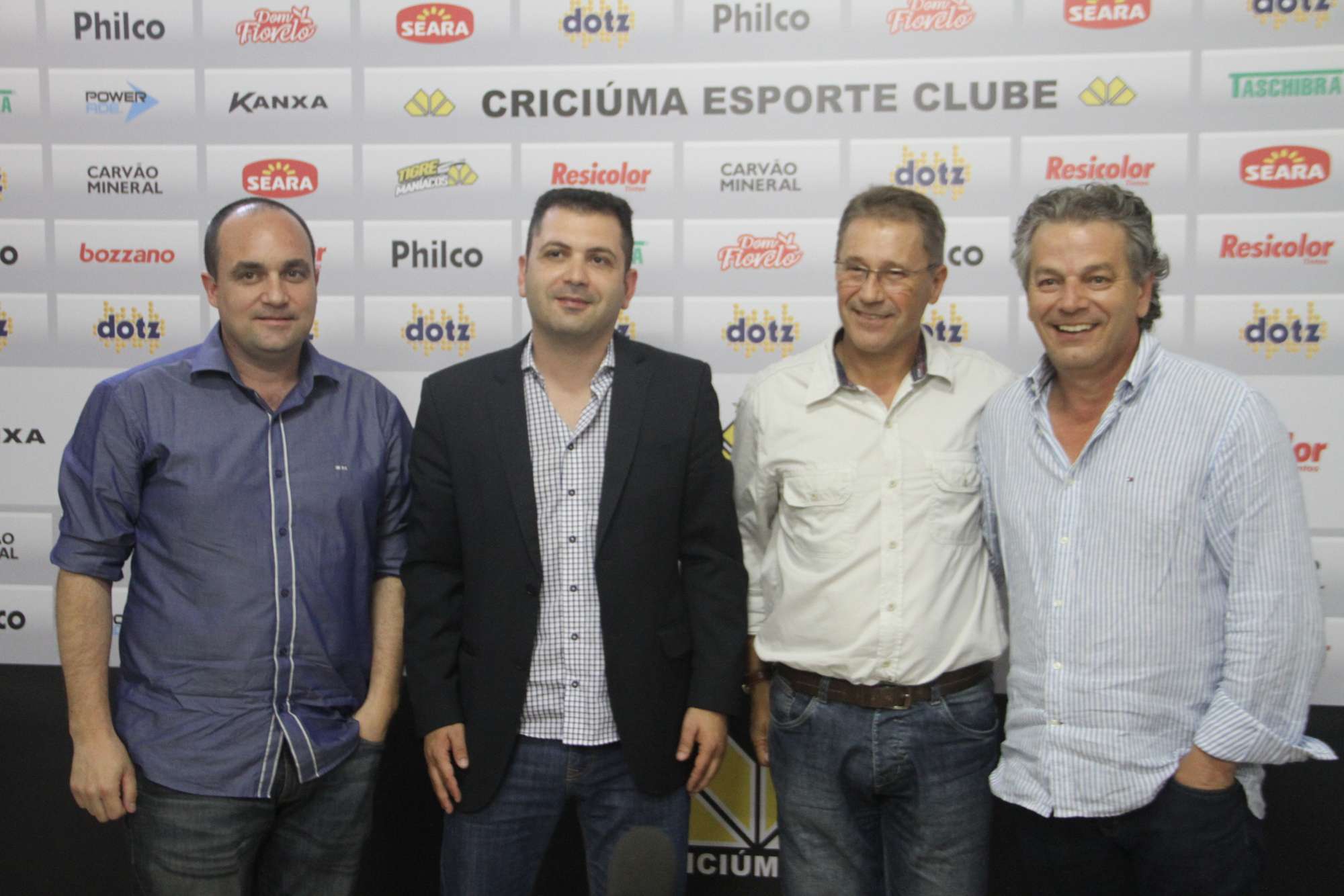 Legenda: Guto Silva, Cláudio Gomes, Carlos Kila e Lédio D'altoé durante a apresentação da nova equipe do departamento de futebol para a temporada 2014