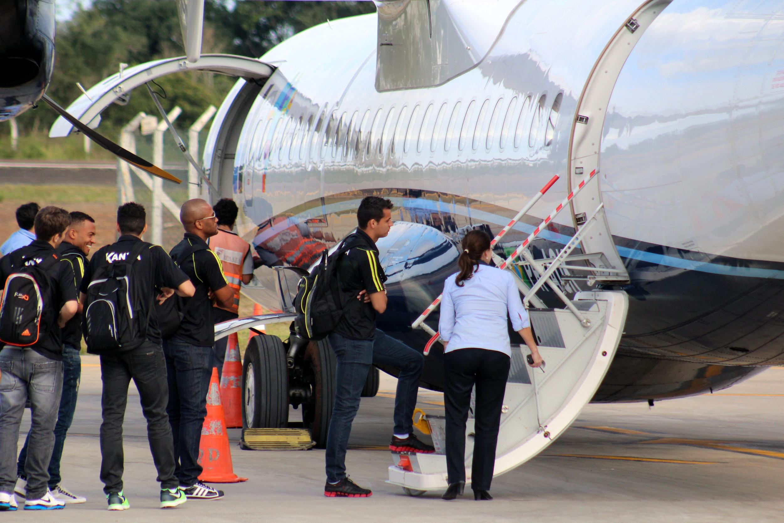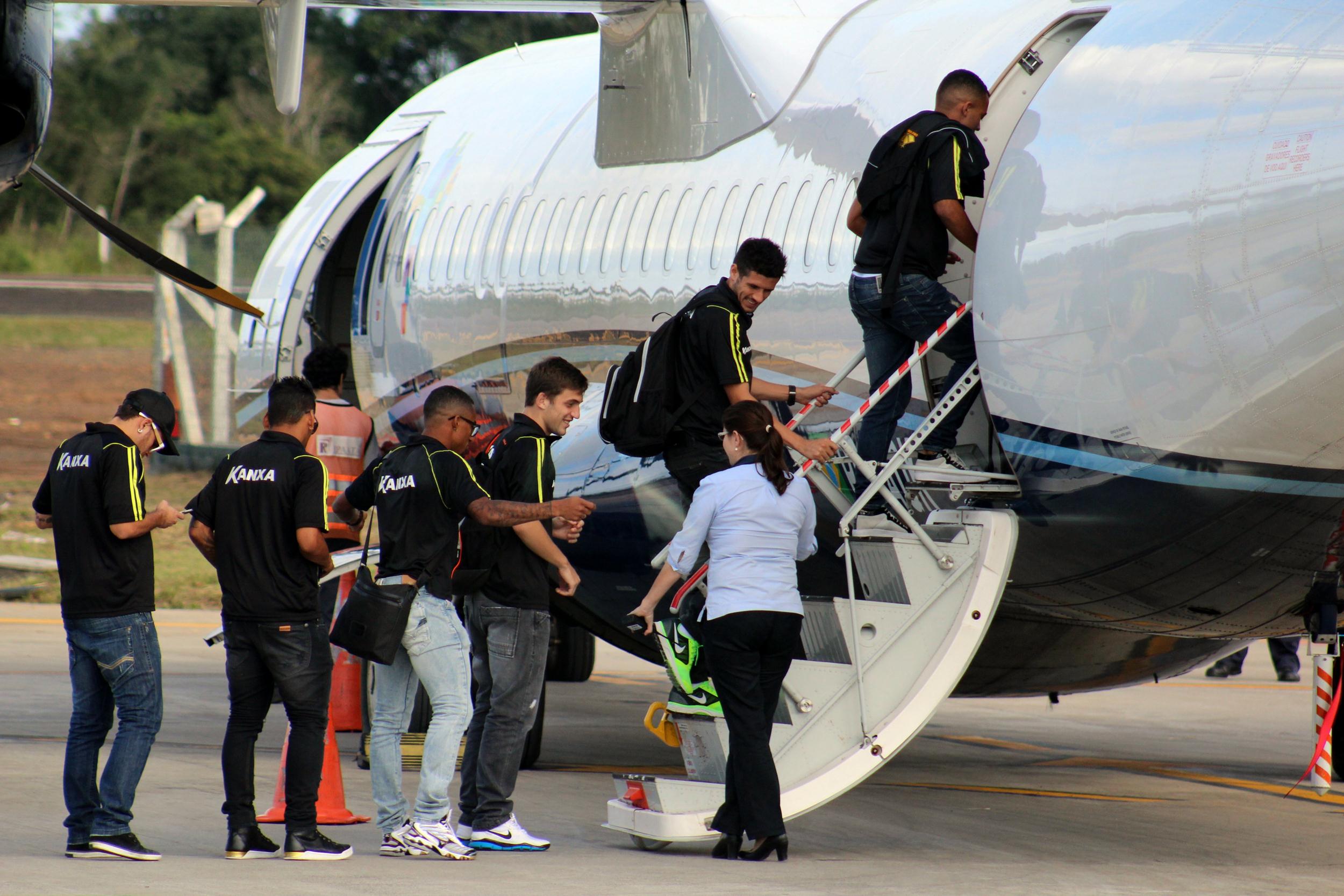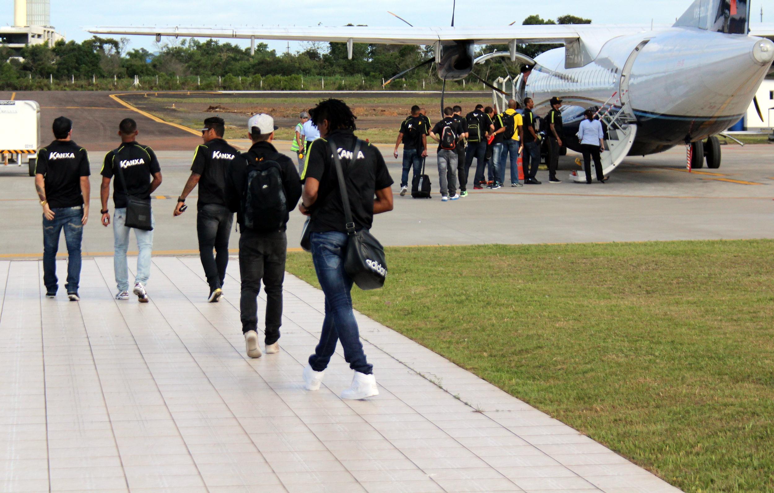 Legenda: Delegação tricolor embarcou no aeroporto Diomício Freitas, em Forquilhina, no início da tarde desta sexta-feira (09/05), para o duelo no Rio de Janeiro, contra o Botafogo