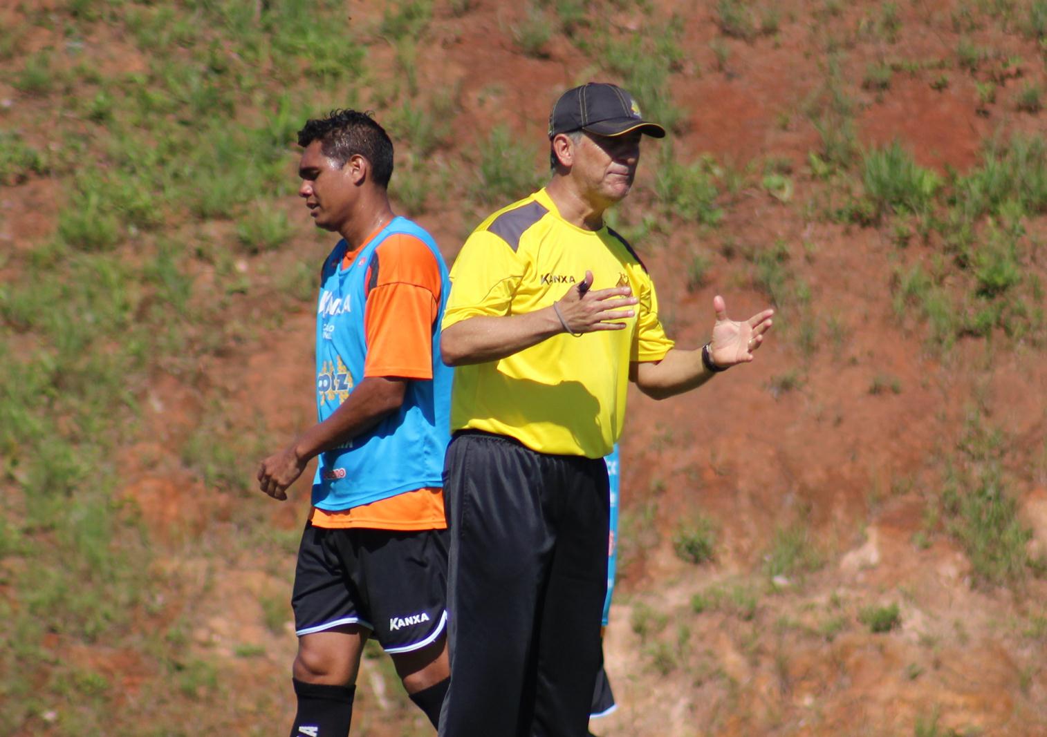 Legenda: Técnico Ricardo Drubscky orienta time durante treino no CT