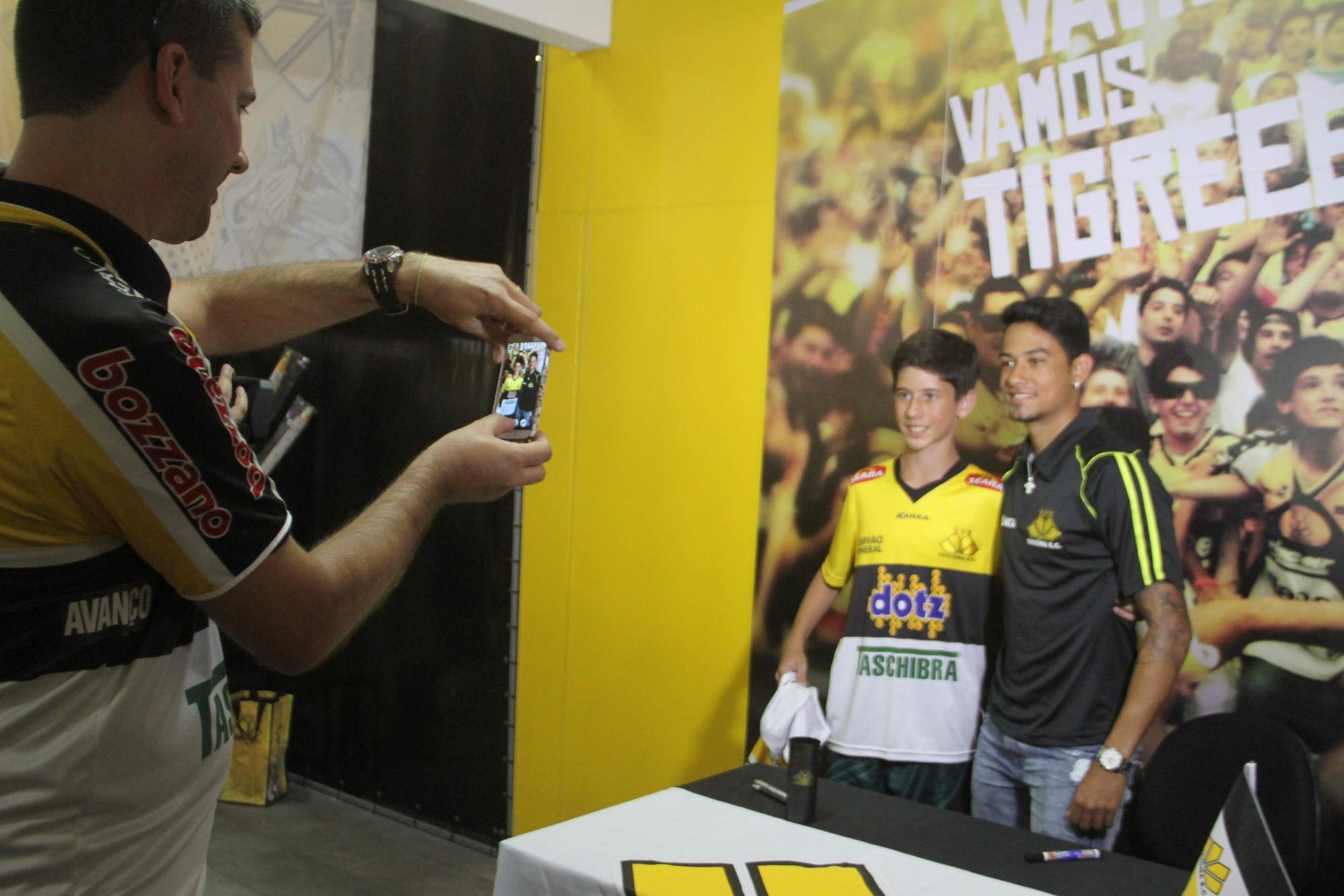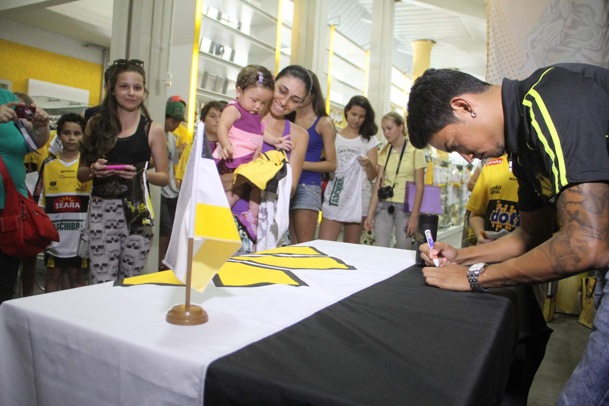 O atacante Lucca fez a festa de um bom número de torcedores que compareceram na tarde desta segunda-feira (20/01) na reabertura da Loja Tigre Maníacos. O local ficou fechado por alguns dias para balanço e algumas mudanças. O atleta do Tigre, um dos destaques do acesso para a Série A em 2012, tirou fotos e distribuiu autógrafos para os torcedores tricolores.