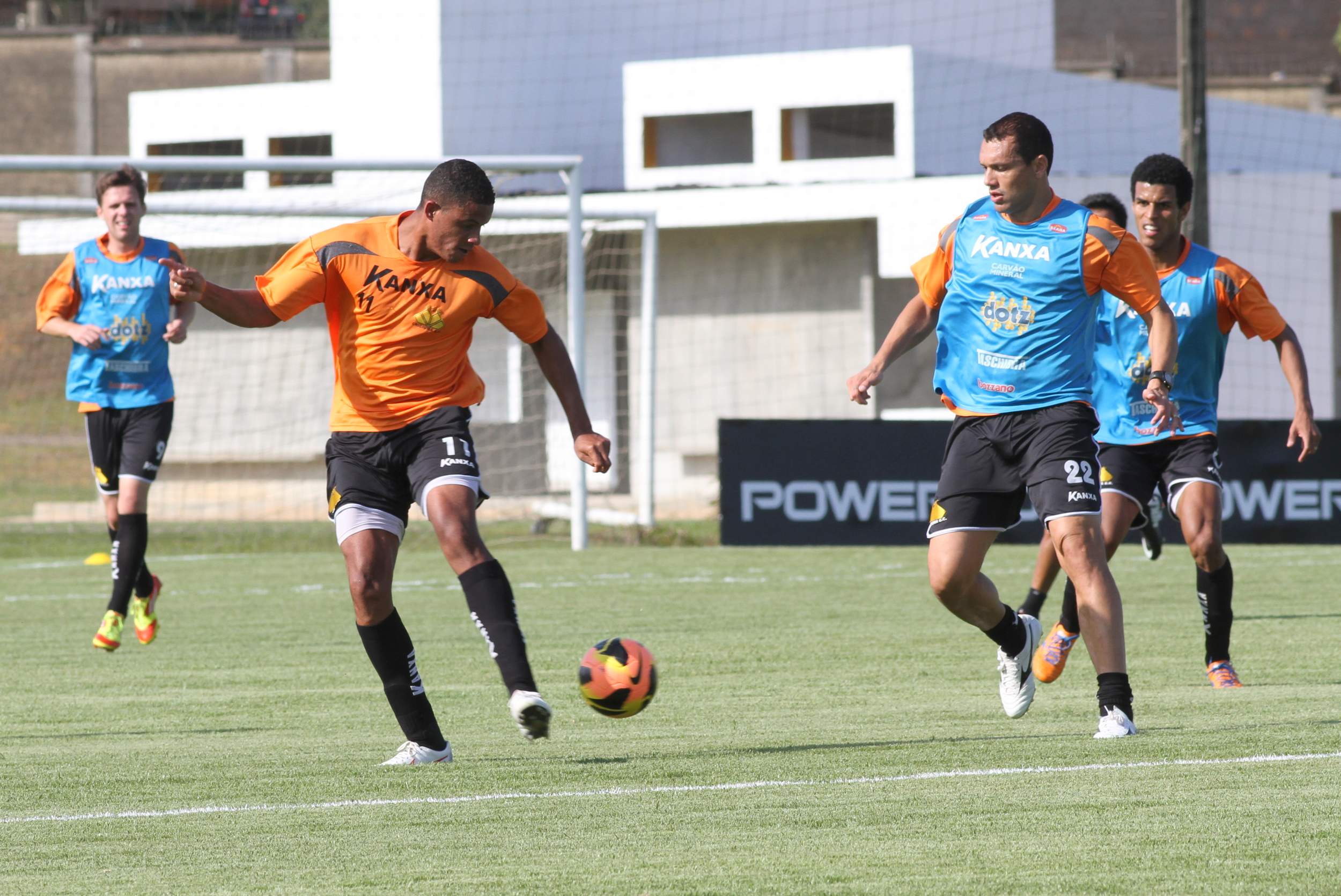 Legenda: Jogadores durante treino do Criciúma na tarde desta quarta-feira (30/10) no Centro de Treinamento, no bairro Cristo Redentor