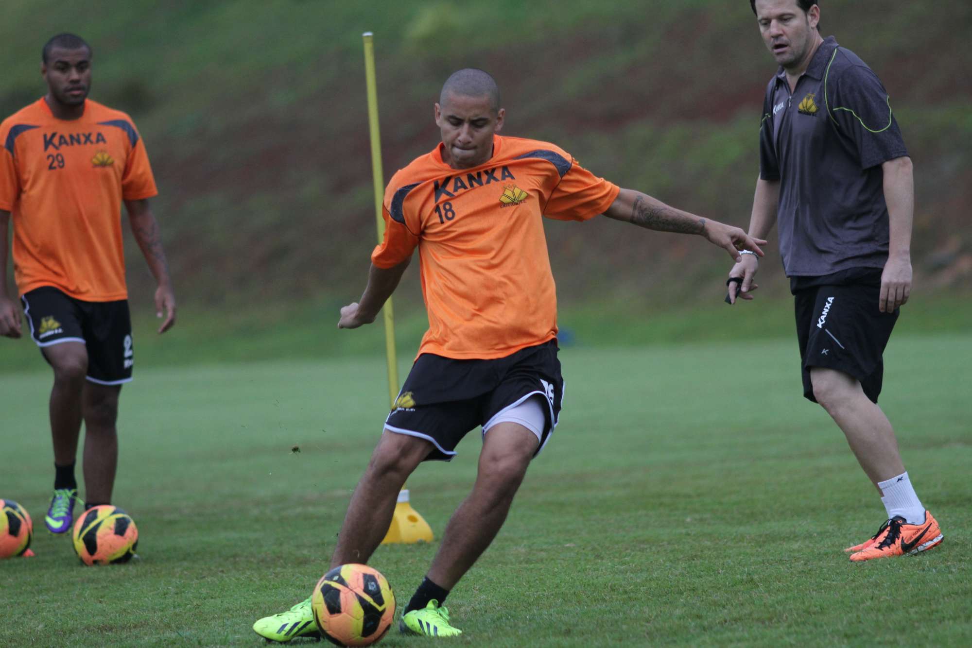 Legenda: Atacante Fabinho e o técnico Argel Fucks durante atividade no Centro de Treinamento, no bairro Cristo Redentor, na tarde desta quinta-feira (21/11)