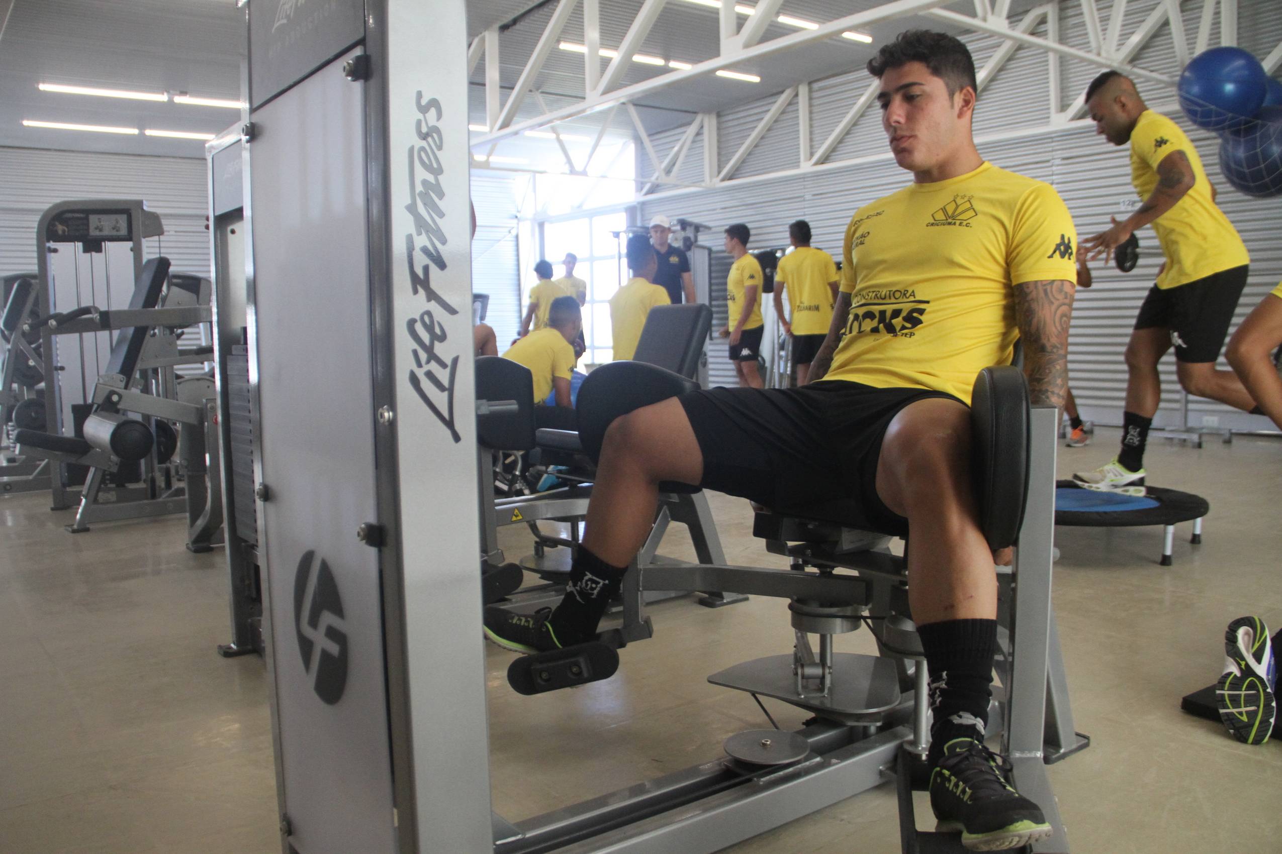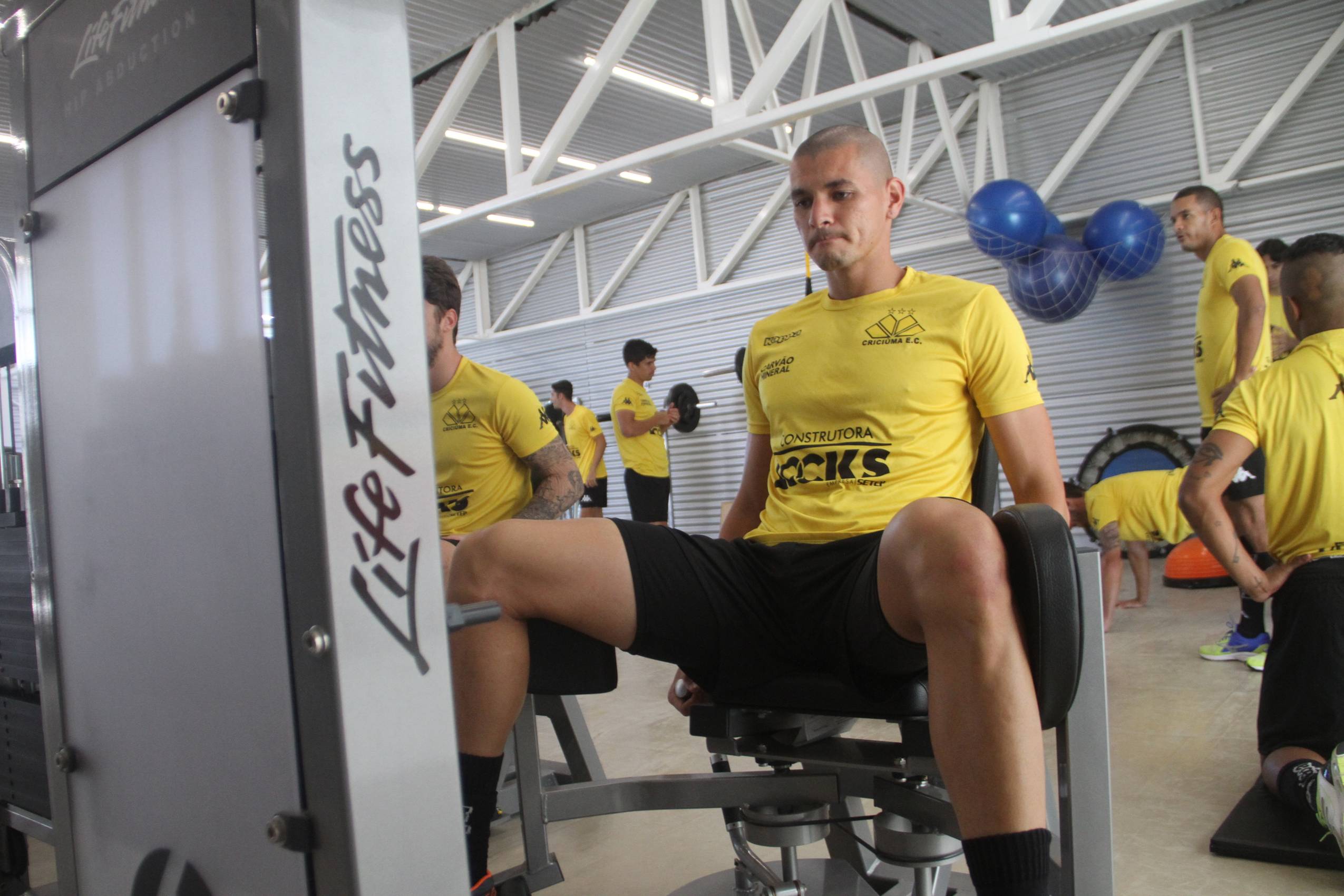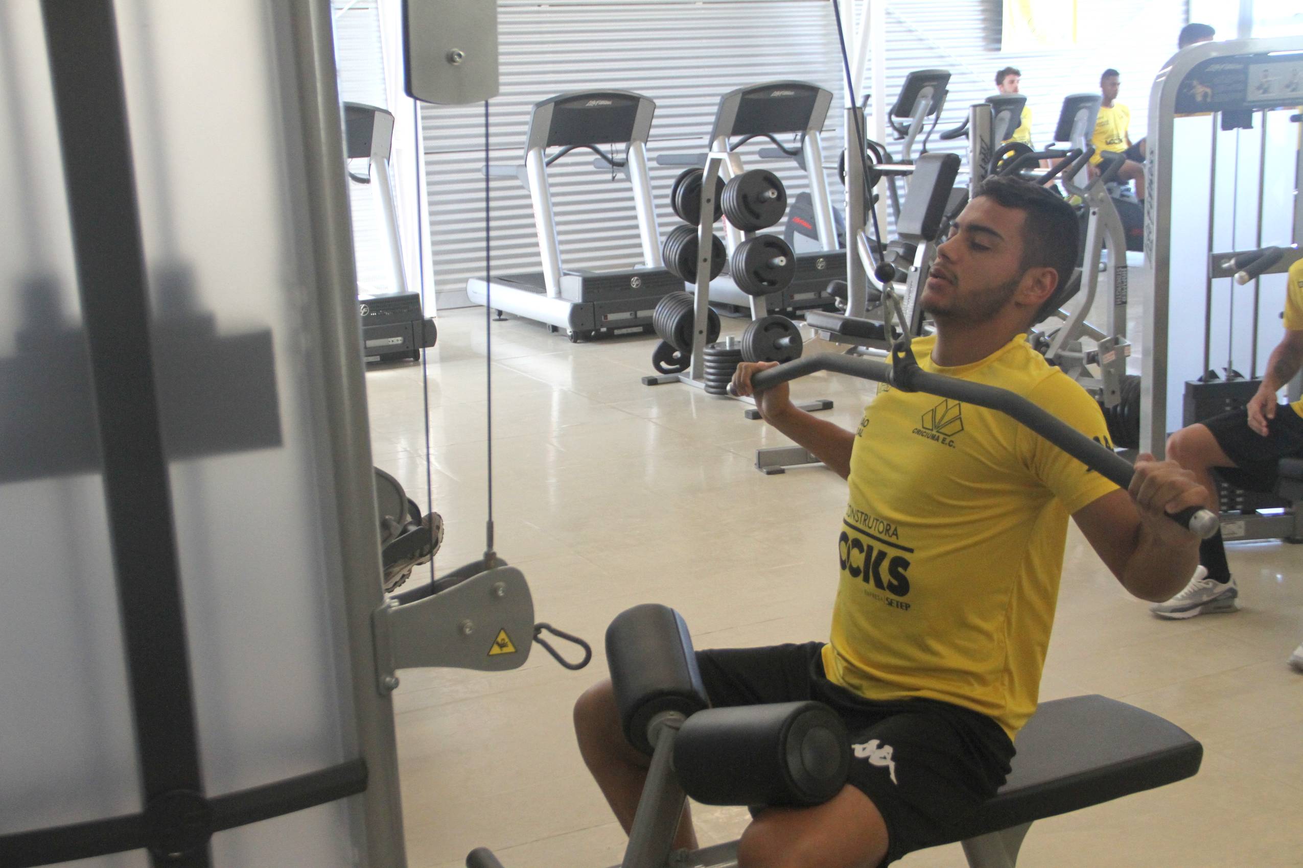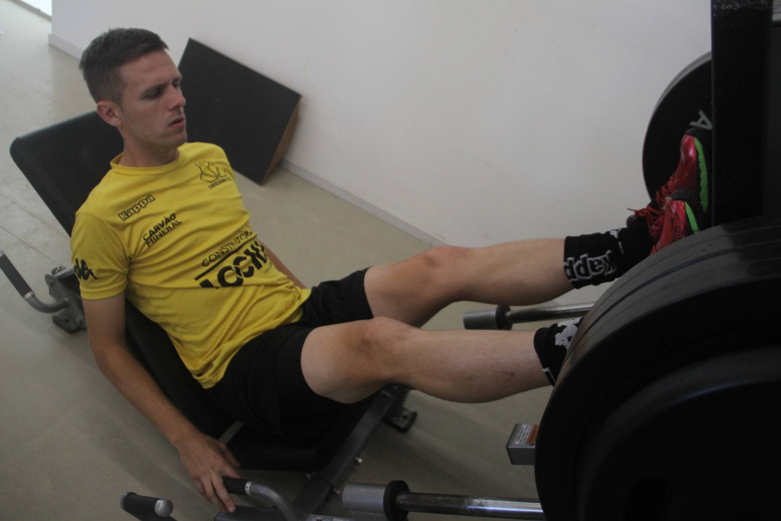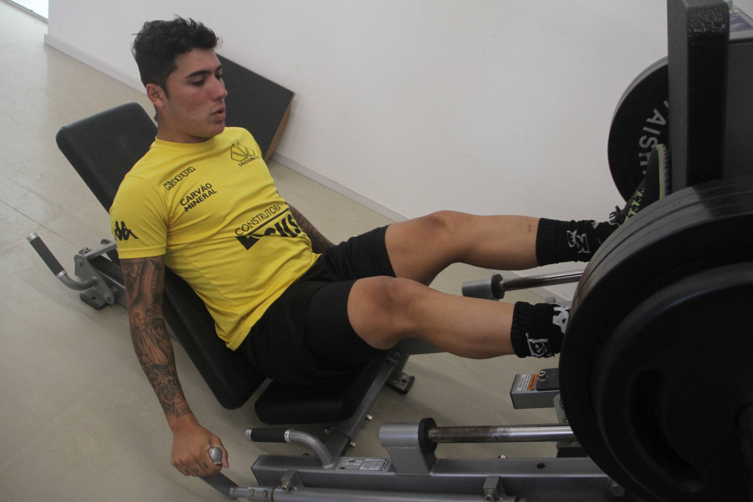 Legenda: Heitor durante treino do Criciúma na manhã desta segunda-feira (08/02), na academia do Centro de Treinamento, no bairro Cristo Redentor