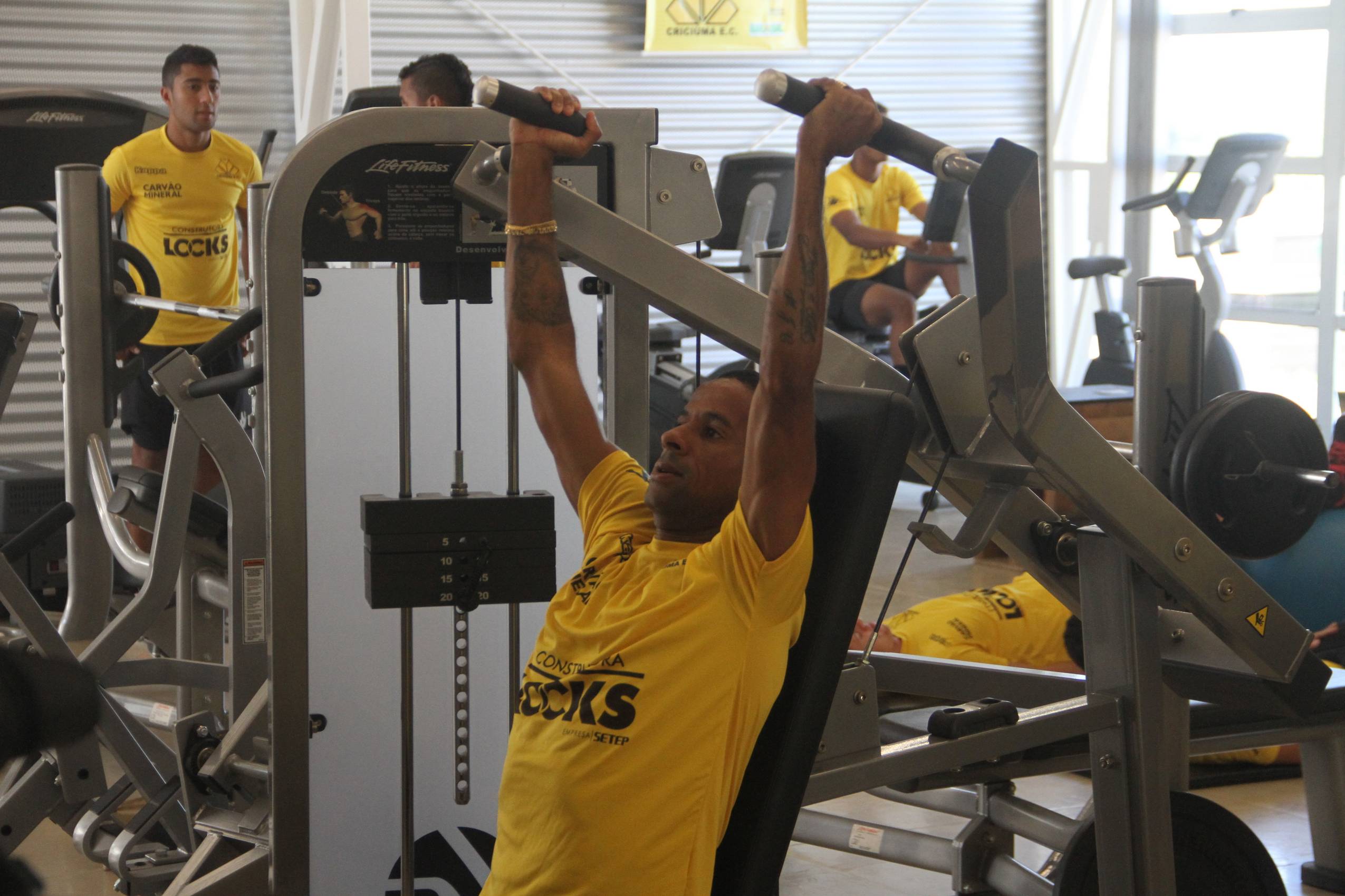 Legenda: Barreto durante treino do Criciúma na manhã desta segunda-feira (08/02), na academia do Centro de Treinamento, no bairro Cristo Redentor