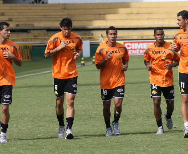 Legenda: Treinamento no estádio Heriberto Hülse, na tarde desta quarta-feira (07/11). Na foto, Fransérgio, Douglas, Valber, Lins e Ozéia.