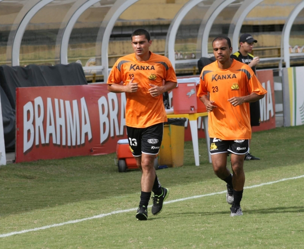 Legenda: Treinamento no estádio Heriberto Hülse, na tarde desta quarta-feira (07/11). Na foto, o volante/lateral Itaqui (E) e o lateral direito Eric (D).