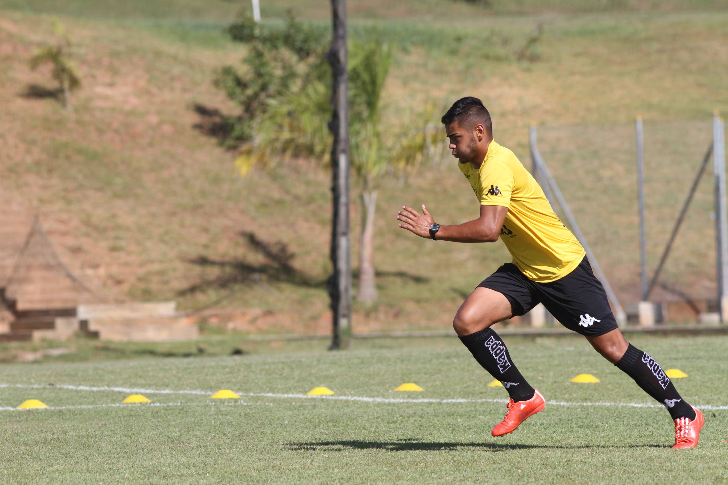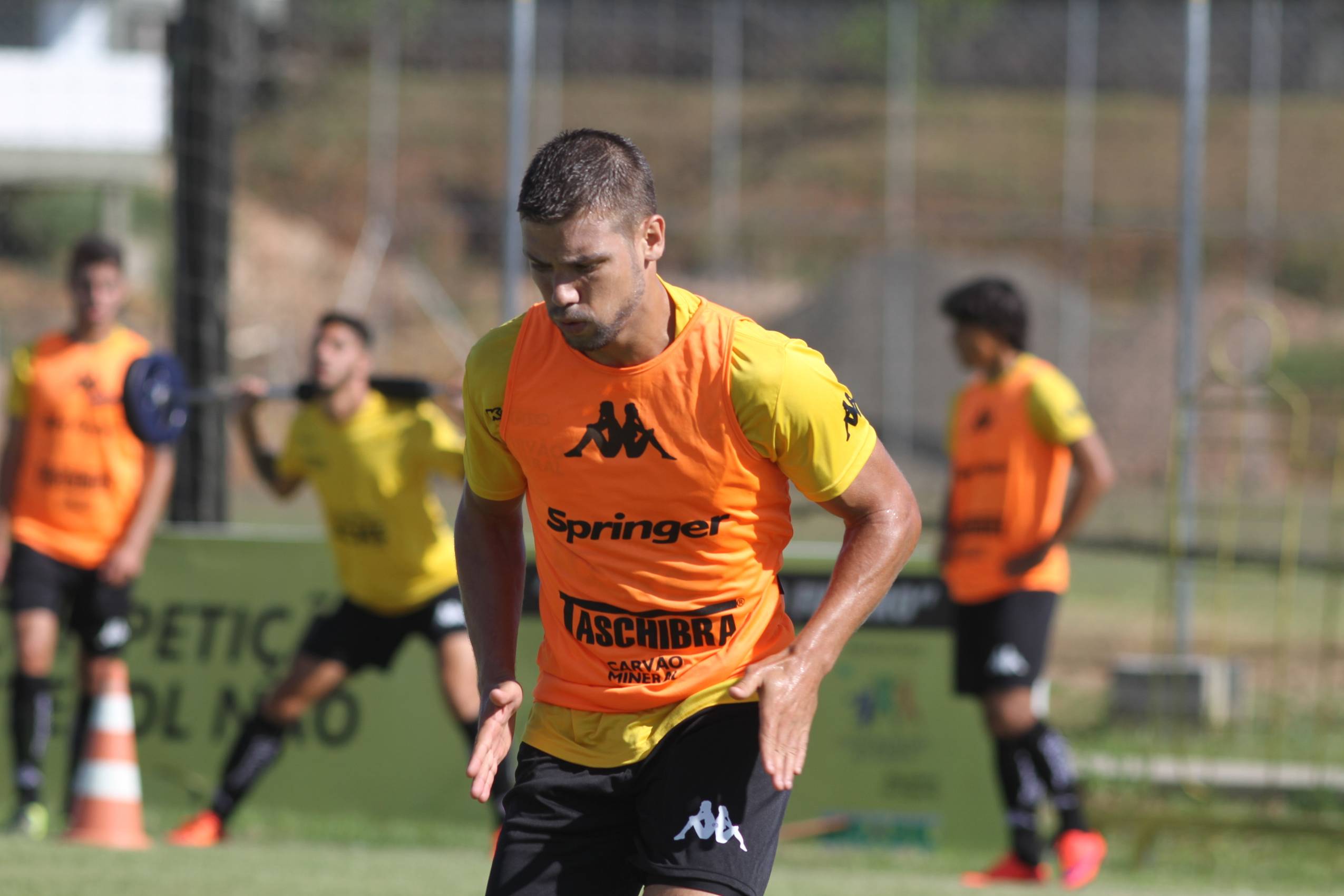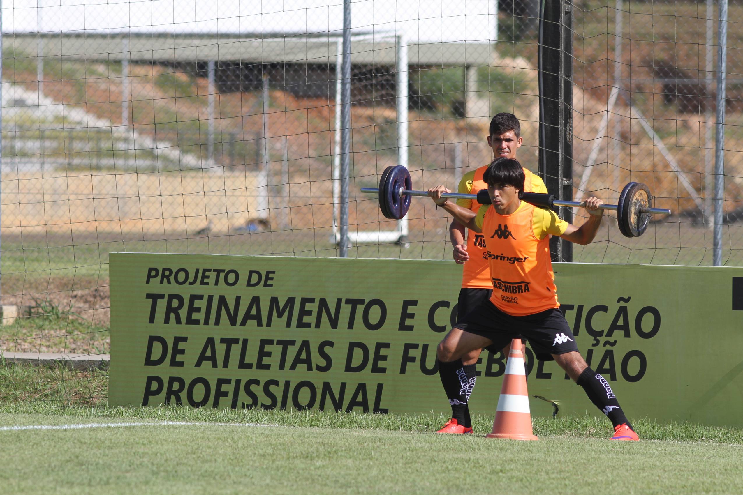 Legenda: João Afonso durante treino do Criciúma na manhã deste sábado (23/01), no Centro de Treinamento, no bairro Cristo Redentor