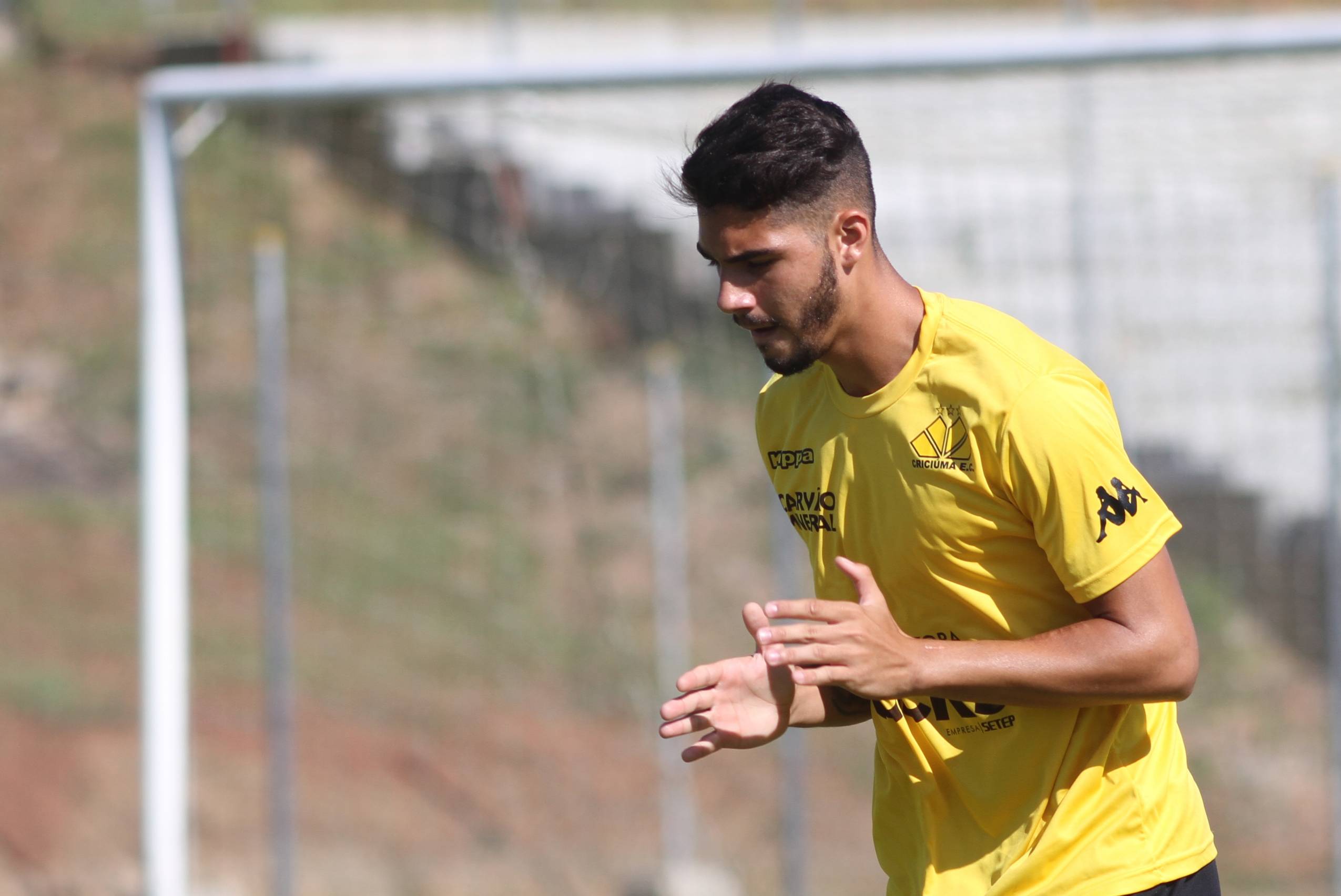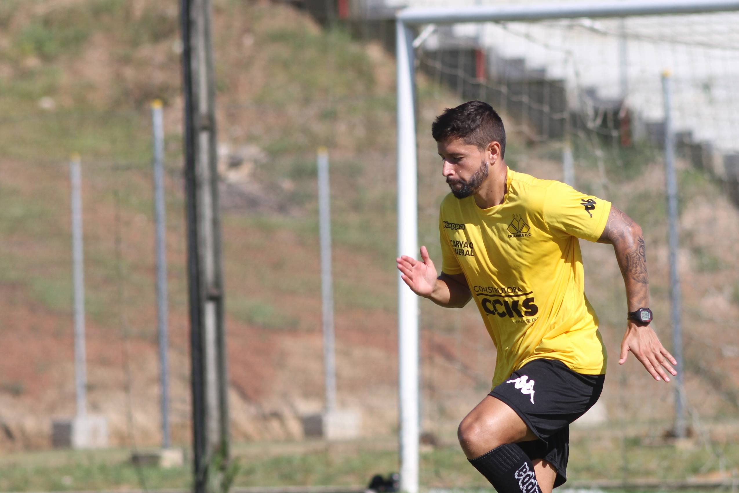 Legenda: Raphael Silva durante treino do Criciúma na manhã deste sábado (23/01), no Centro de Treinamento, no bairro Cristo Redentor